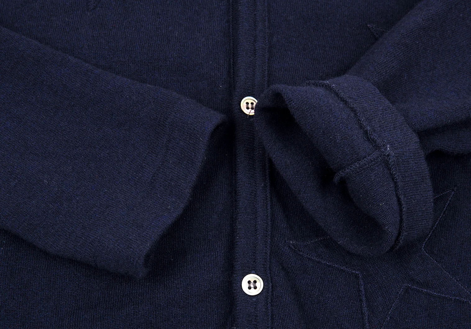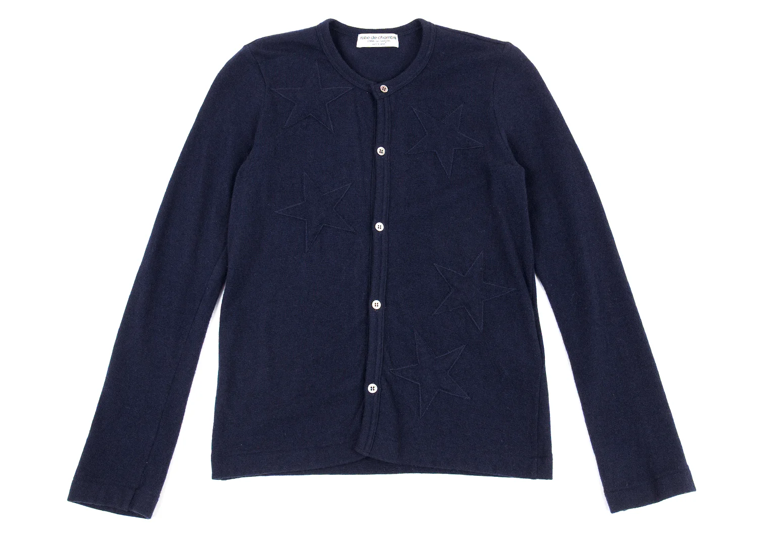 ローブドシャンブル コムデギャルソンrobe de chambre COMME des GARCONS ウールカシミヤスターパッチカーディガン 紺M位