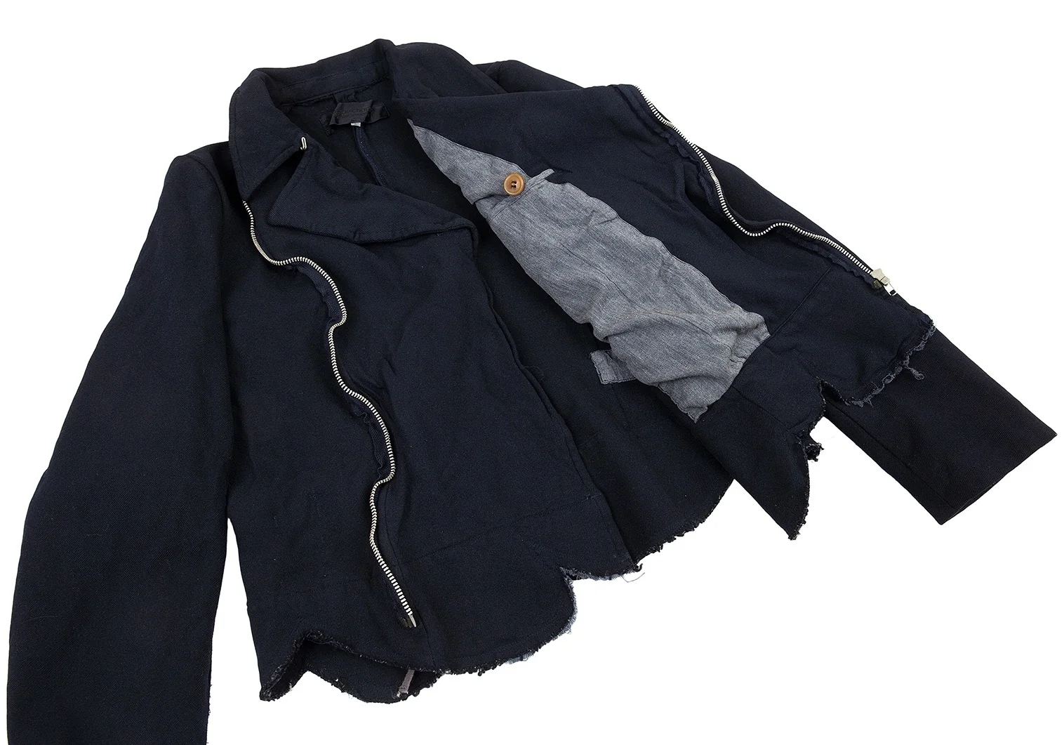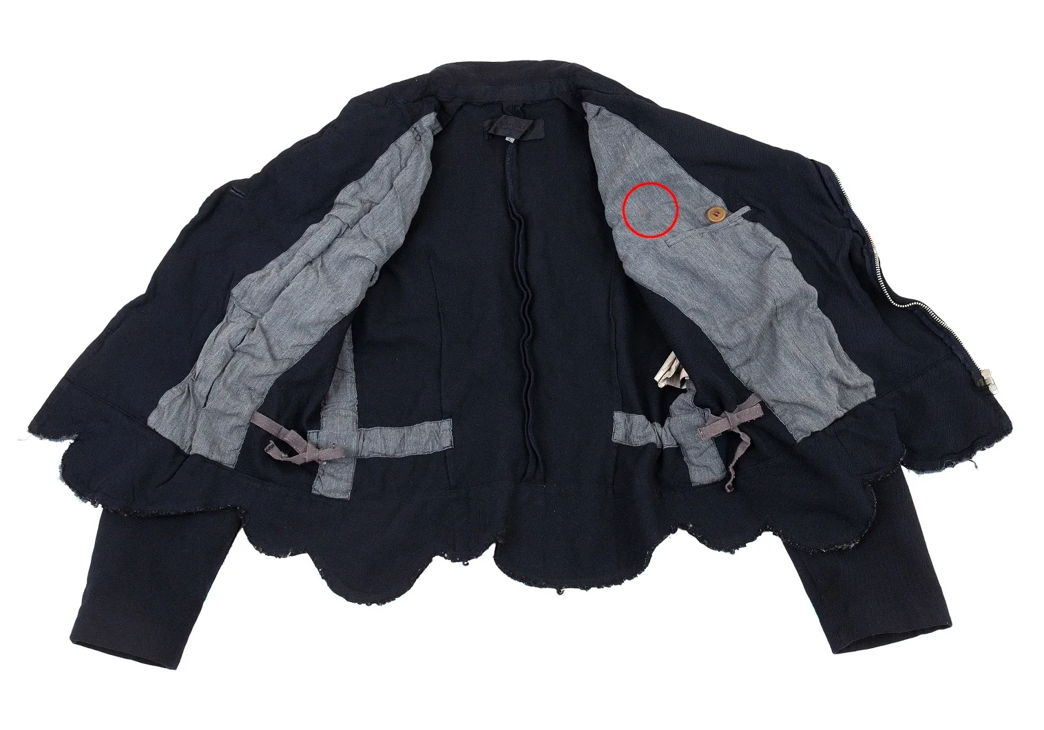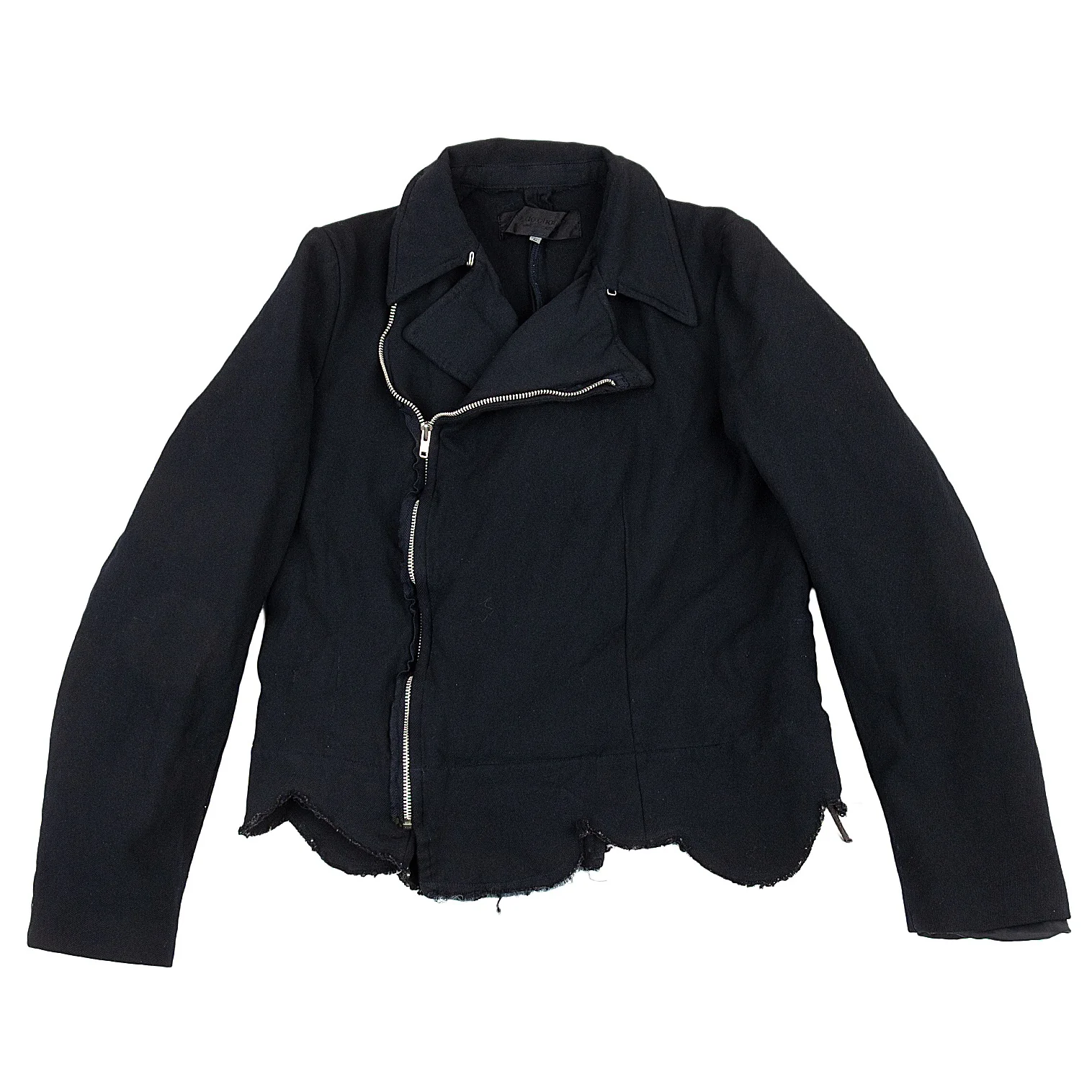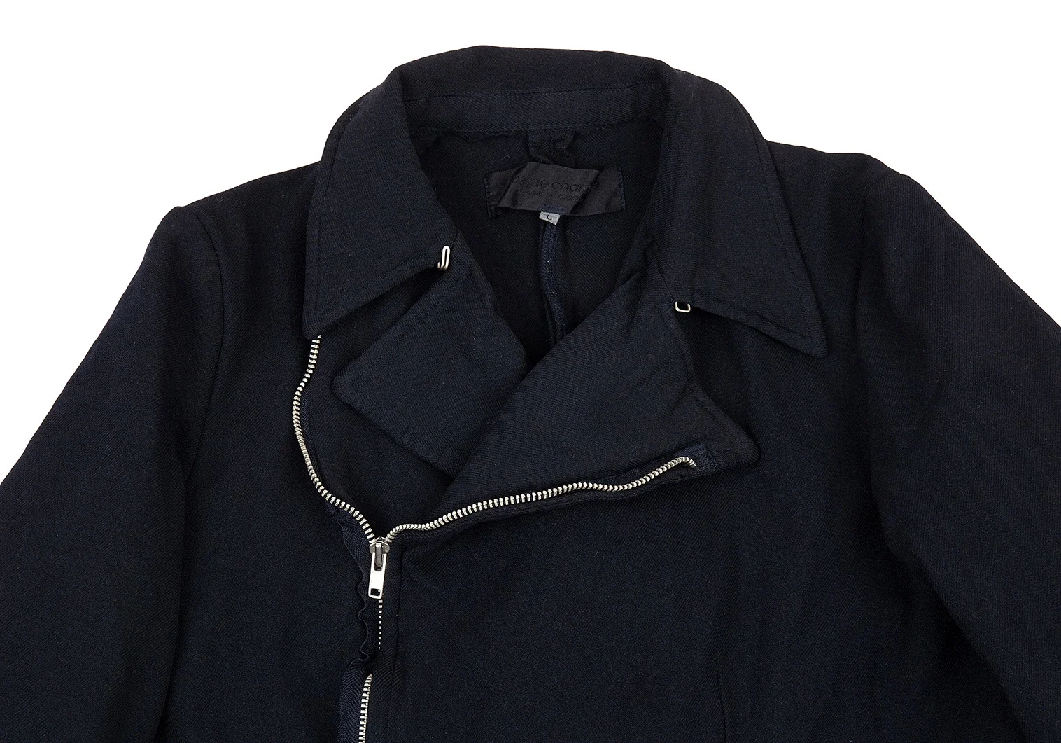 ローブドシャンブル コムデギャルソンrobe de chambre COMME des GARCONS ポリ縮絨波カットライダースジャケット 紺L