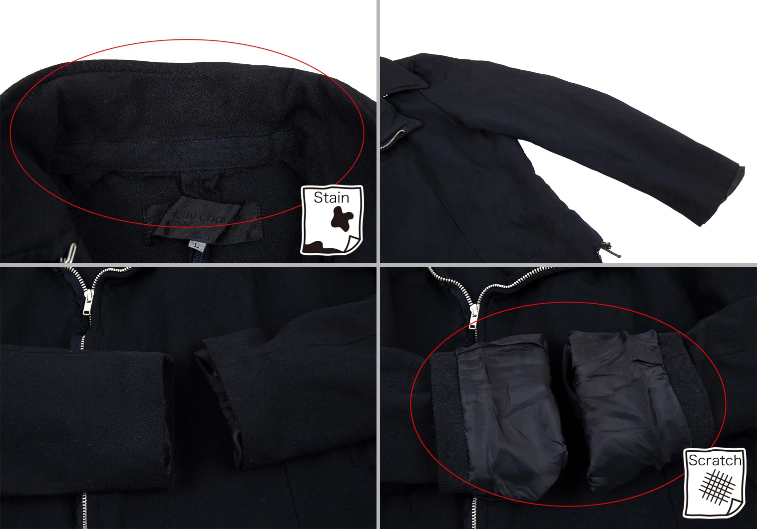 全体的に少し毛羽立ち・着用感あり。首裏に薄汚れ、袖裏に引っ掛け・生地のヨレ、裏地に汚れがあります(画像参照)。その他目立ったシミ、汚れ、ほつれ等ありません。クリーニング済み