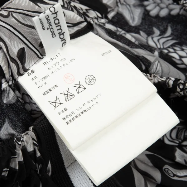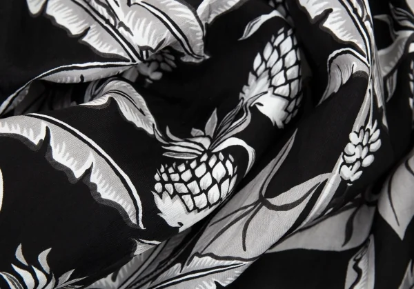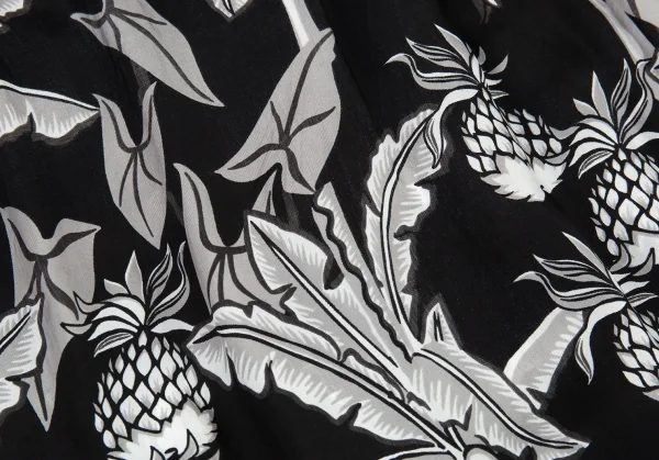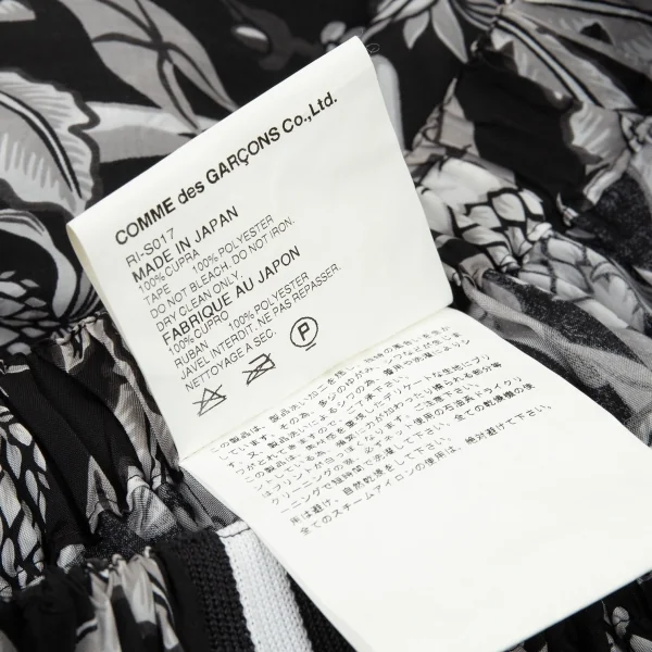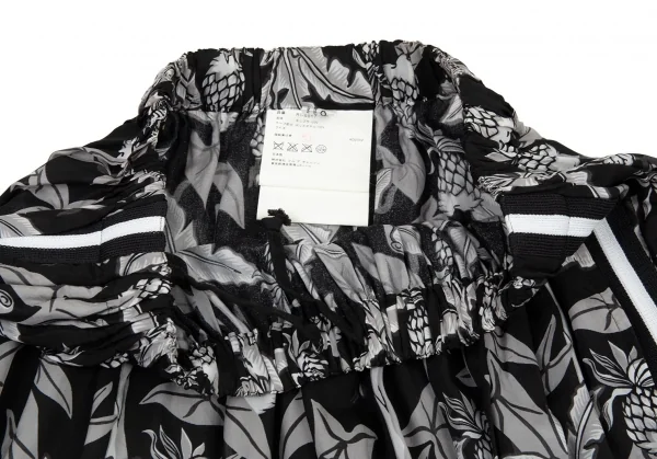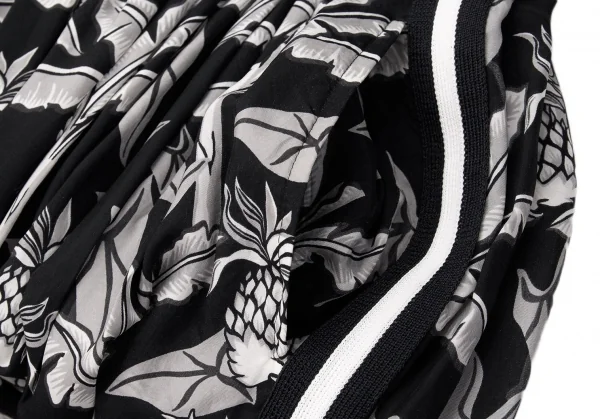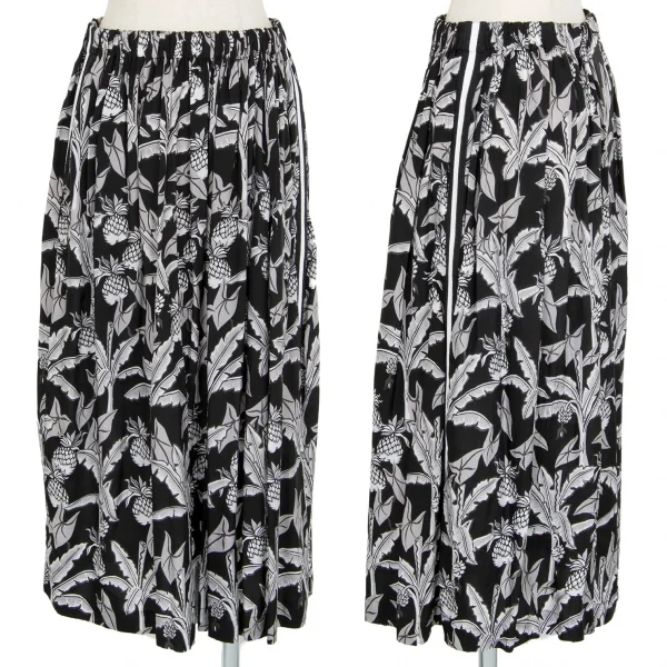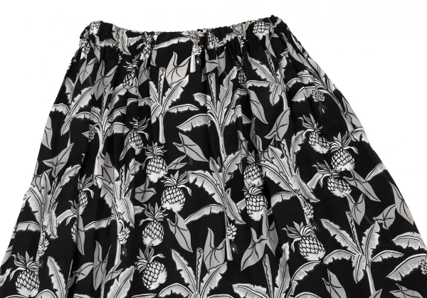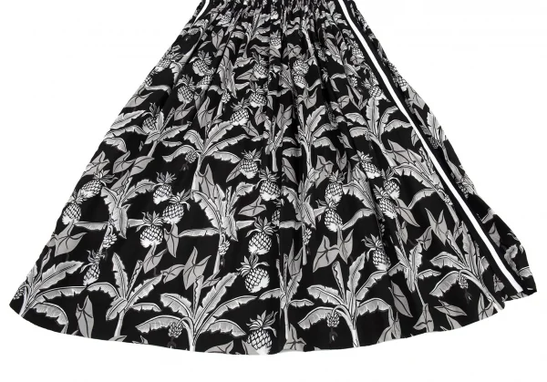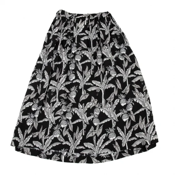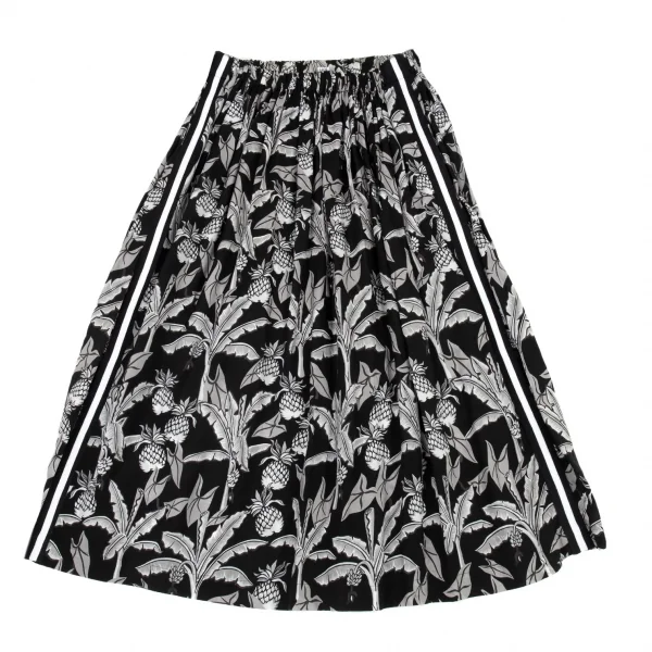 ローブドシャンブル コムデギャルソンrobe de chambre COMME des GARCONS パイナップルプリントサイドラインギャザースカート 黒グレー白M位