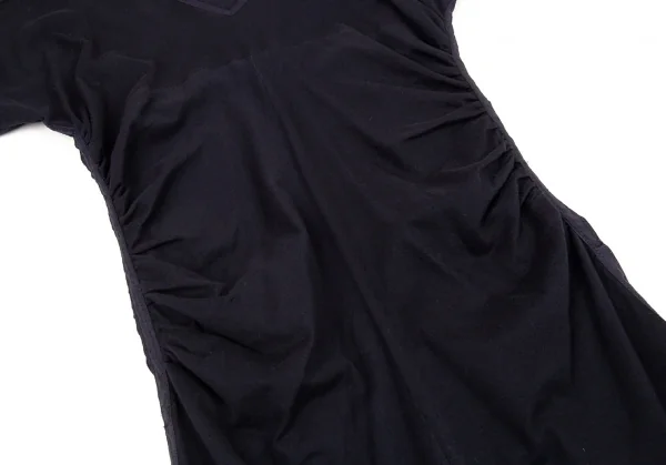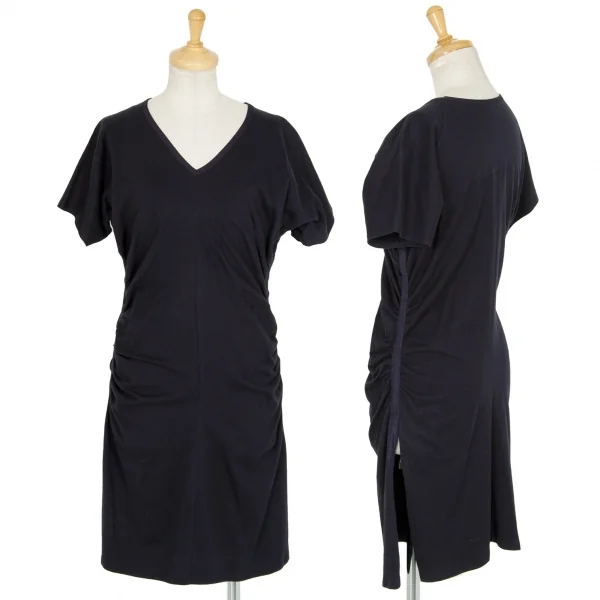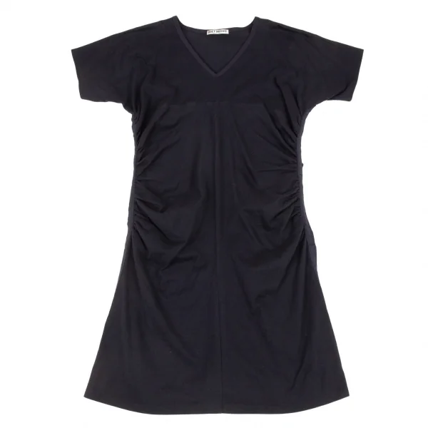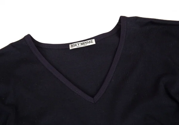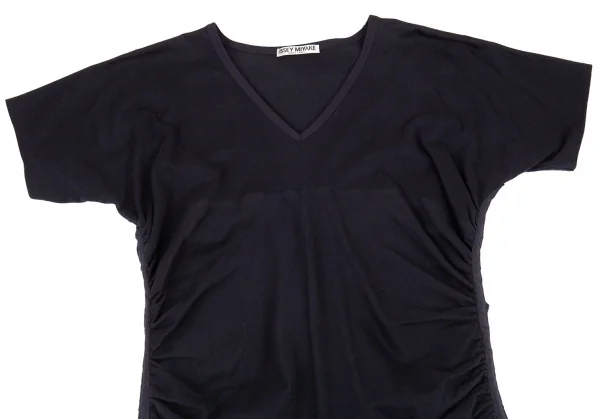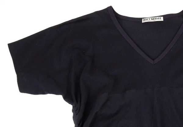 イッセイミヤケ ホワイトレーベルISSEY MIYAKE WHITE LABEL サイドギャザーVネックTシャツワンピース 紺3