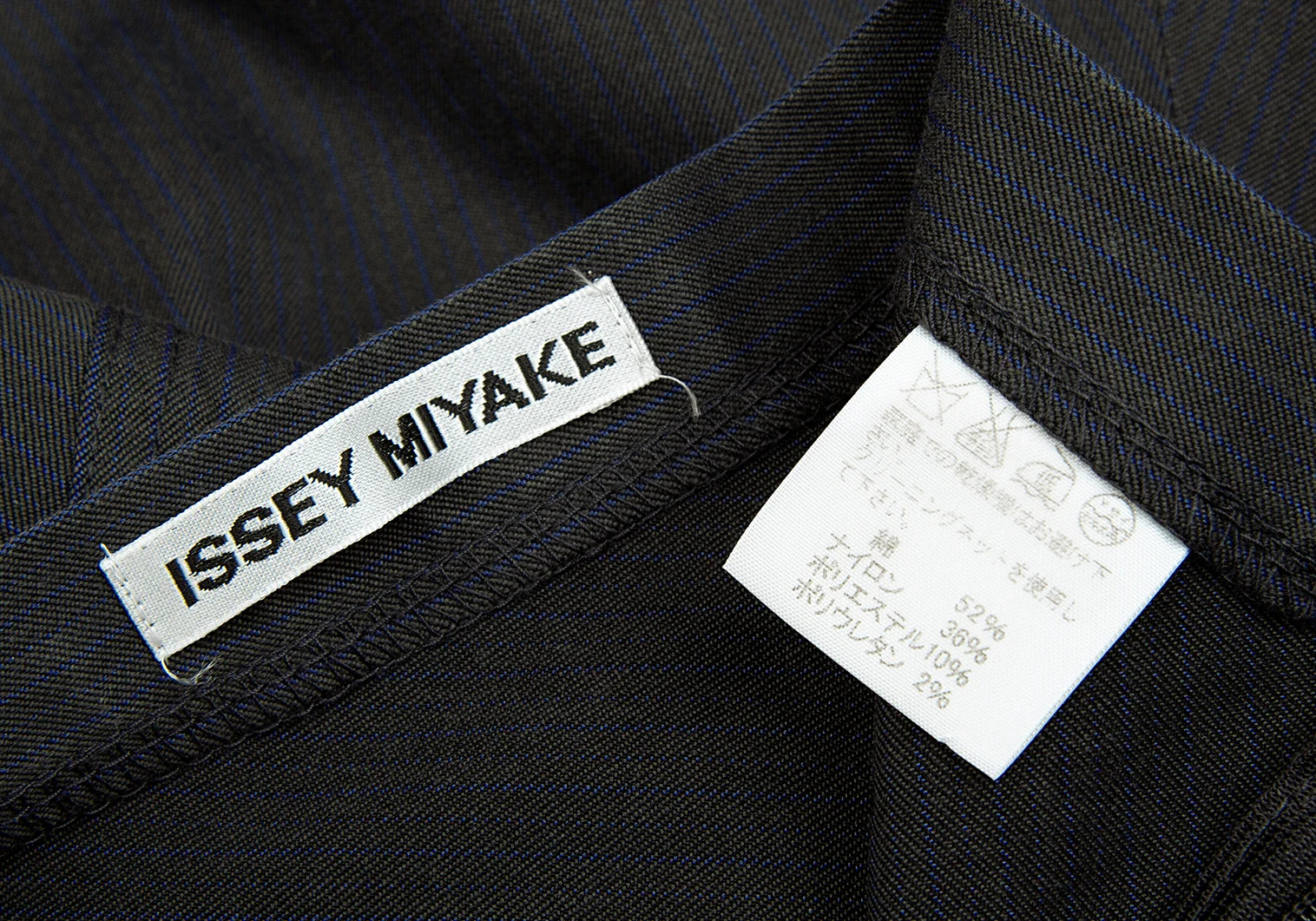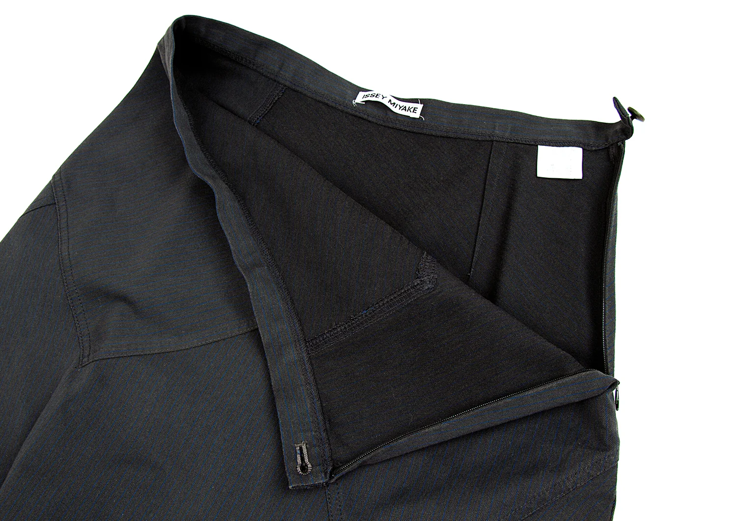 イッセイミヤケISSEY MIYAKE ストレッチコットンストライプ切替デザインスカート グレー青3