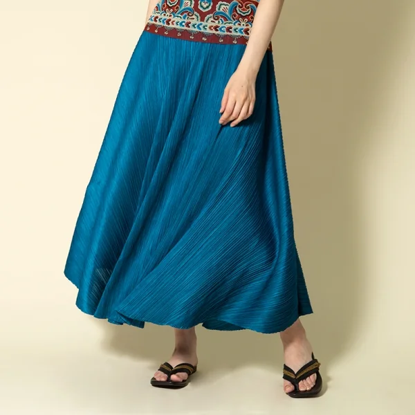 プリーツプリーズPLEATS PLEASE プリーツフレアーロングスカート 青M位