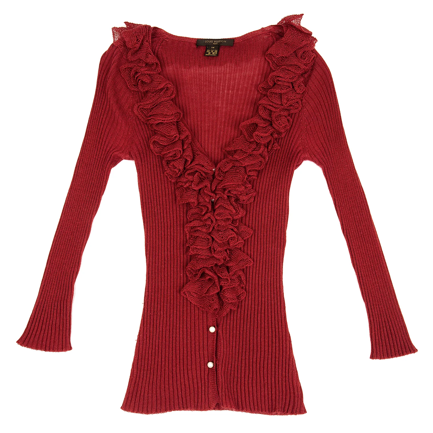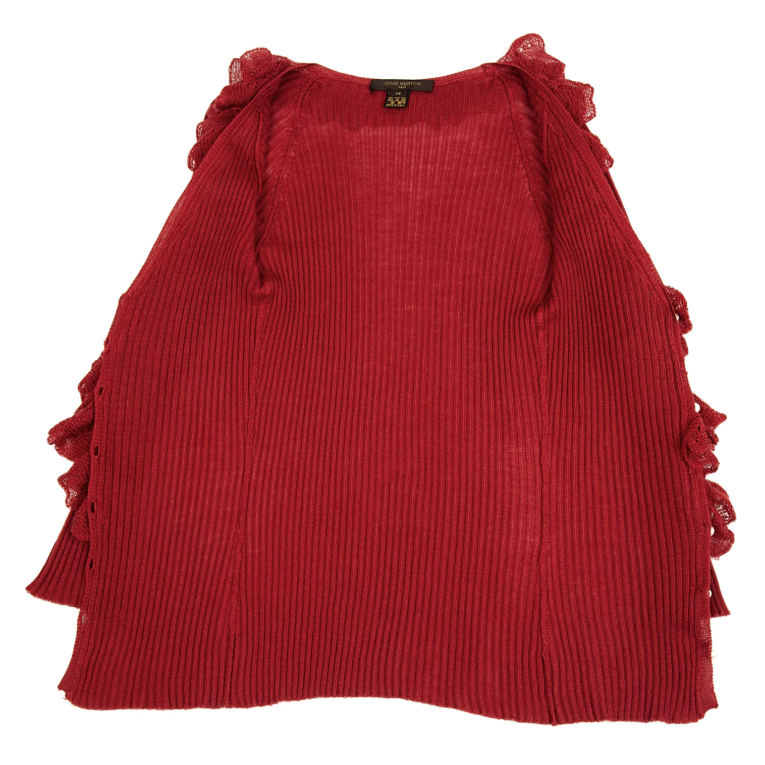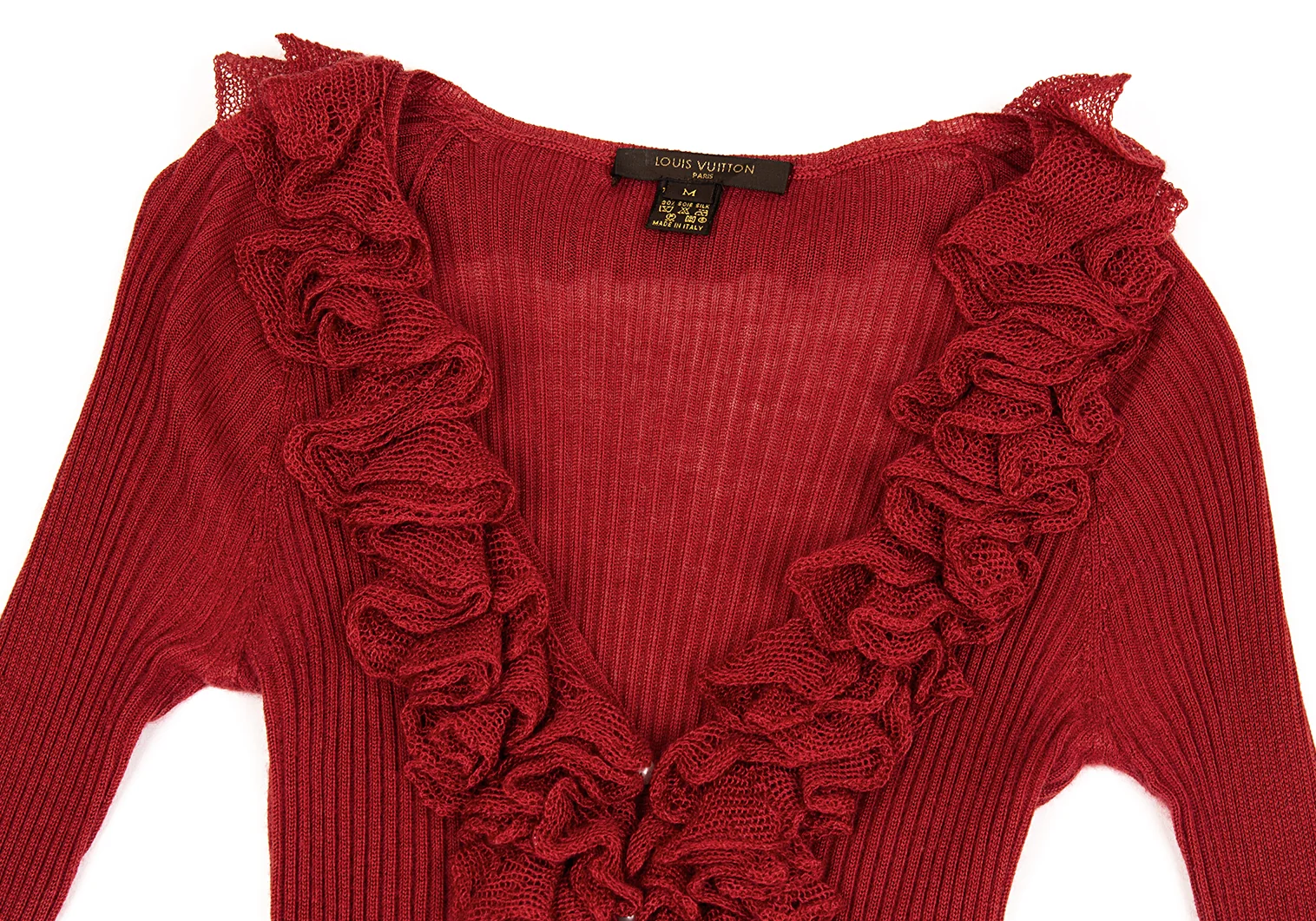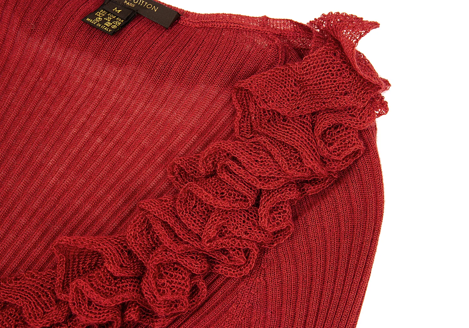 ルイヴィトンLouis Vuitton シルクラッフルリブニットカーディガン 赤M