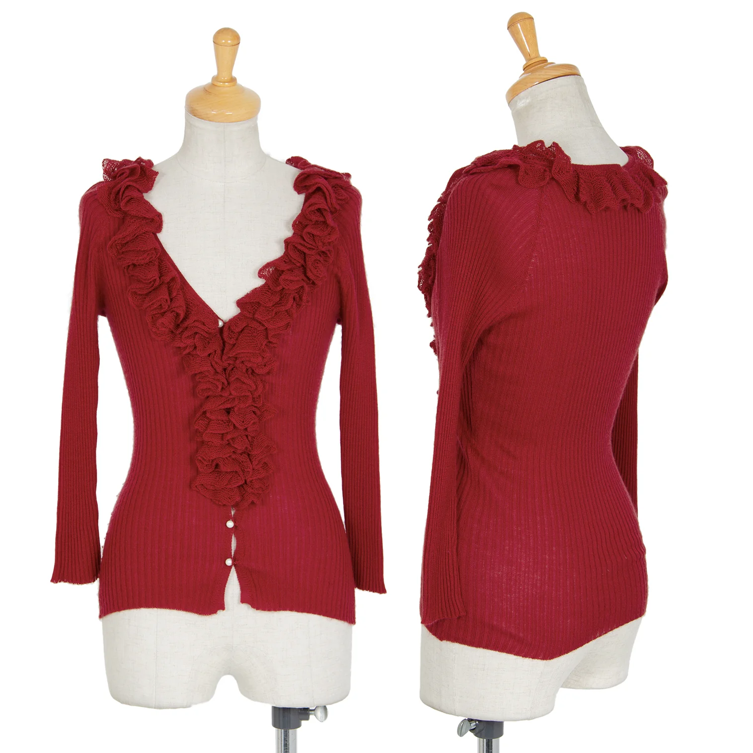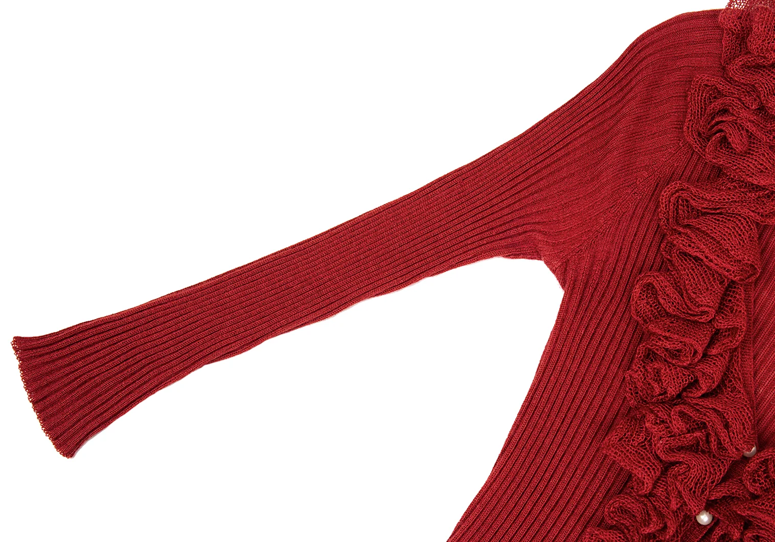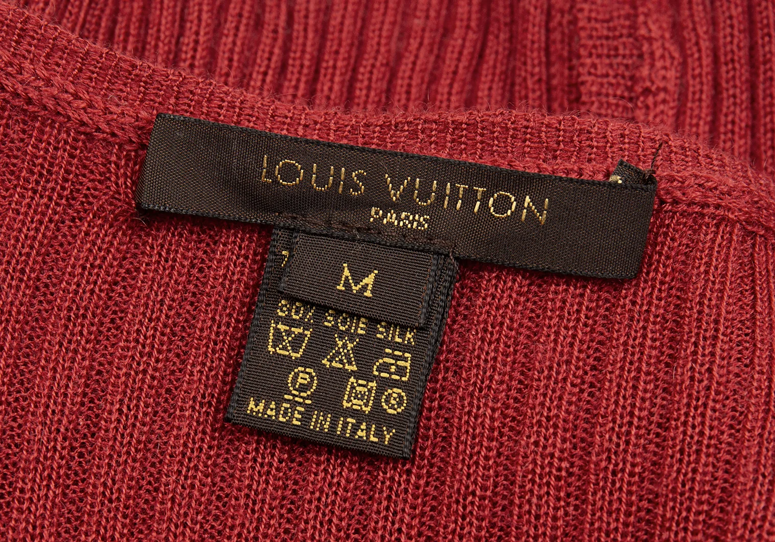ルイヴィトンLouis Vuitton シルクラッフルリブニットカーディガン 赤M
