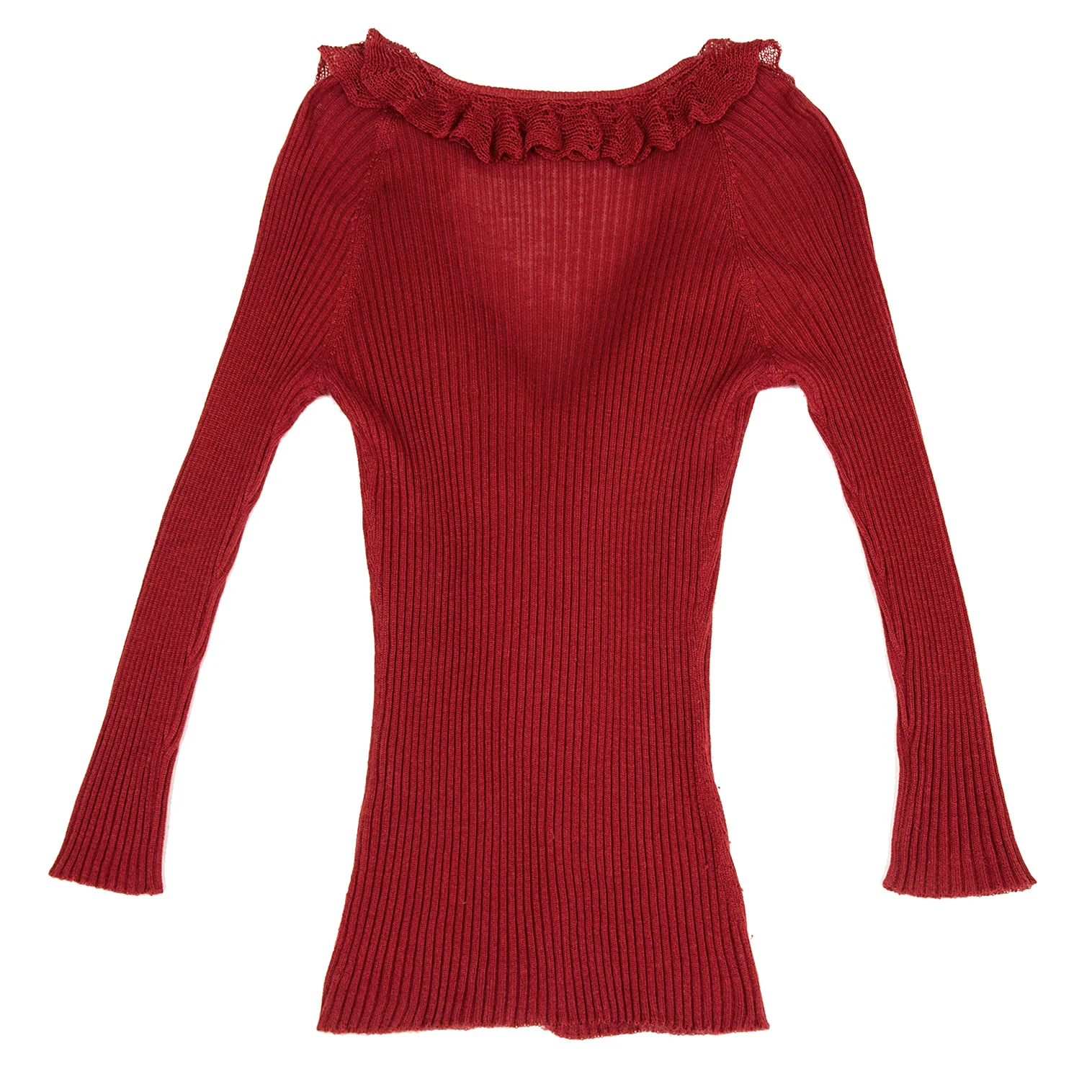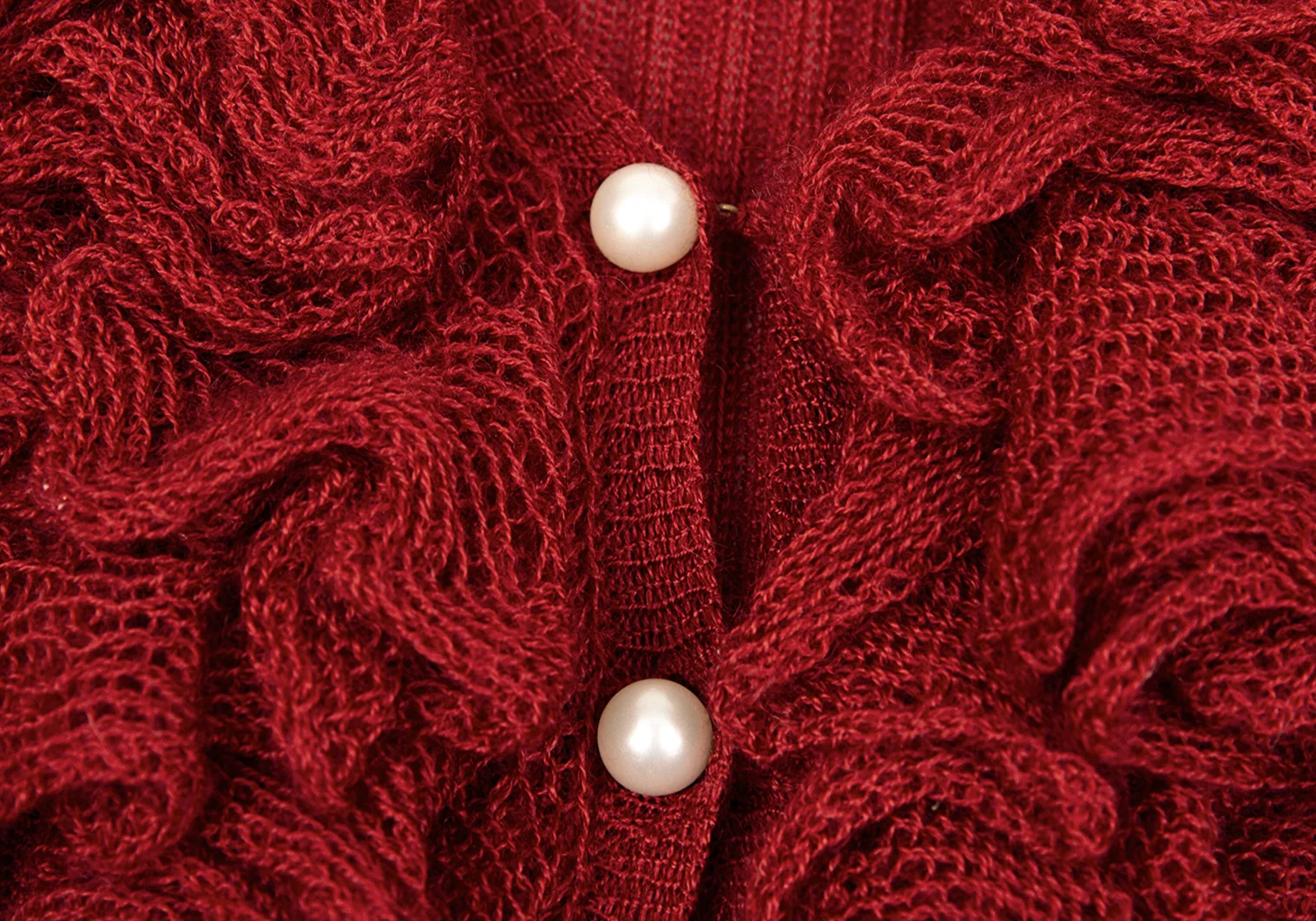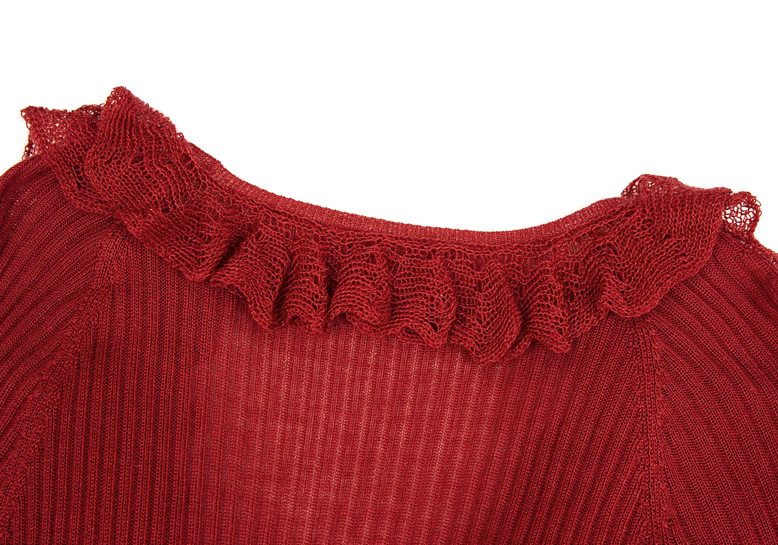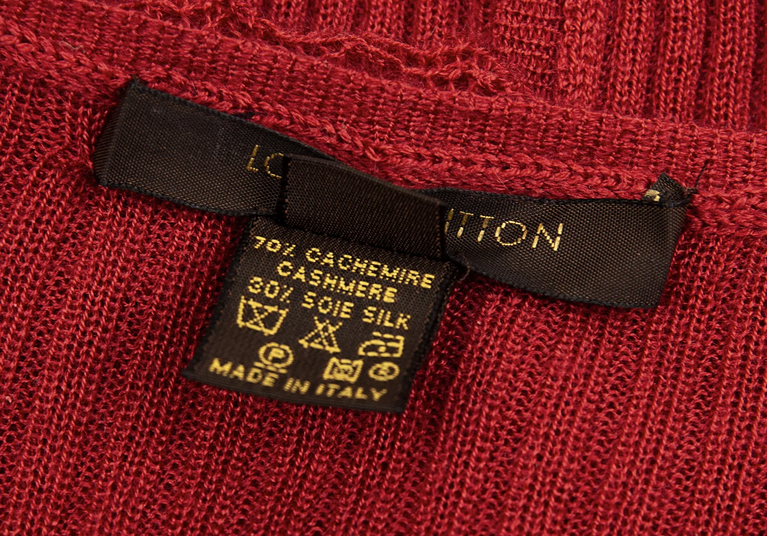 ルイヴィトンLouis Vuitton シルクラッフルリブニットカーディガン 赤M