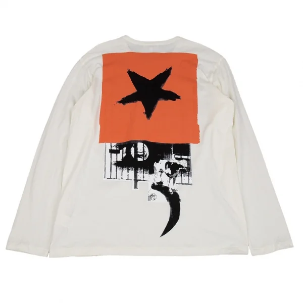ヨウジヤマモト プールオムYohji Yamamoto POUR HOMME バック松岡亮グラフィックプリント長袖Tシャツ 生成り3