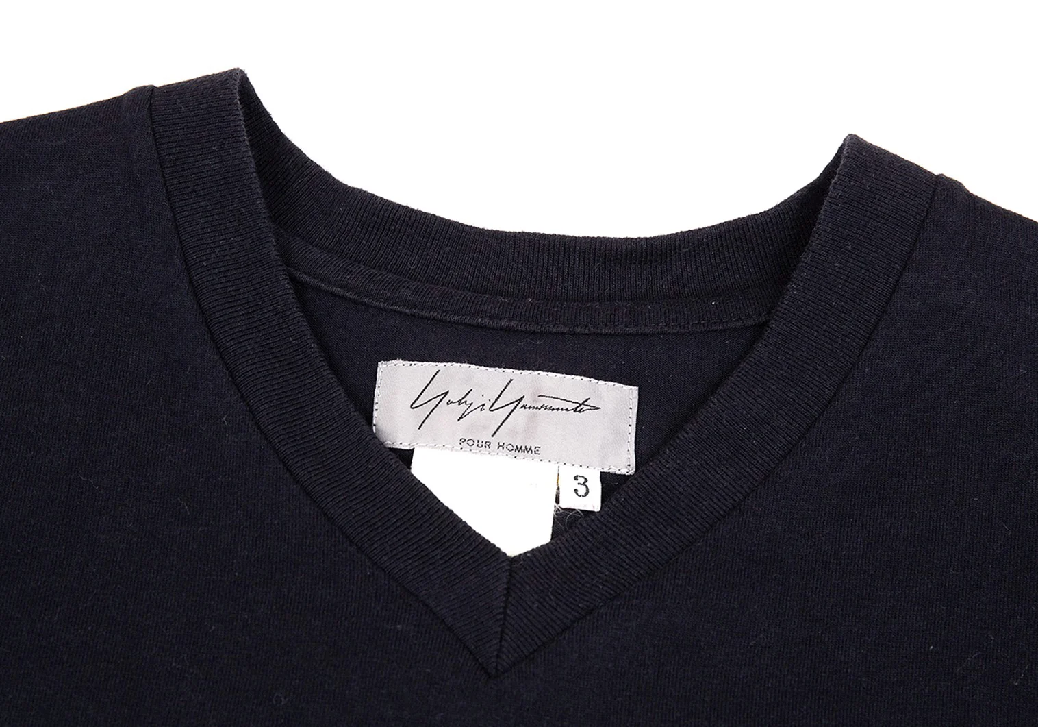 ヨウジヤマモト プールオムYohji Yamamoto POUR HOMME サイドタグVネックTシャツ 紺3