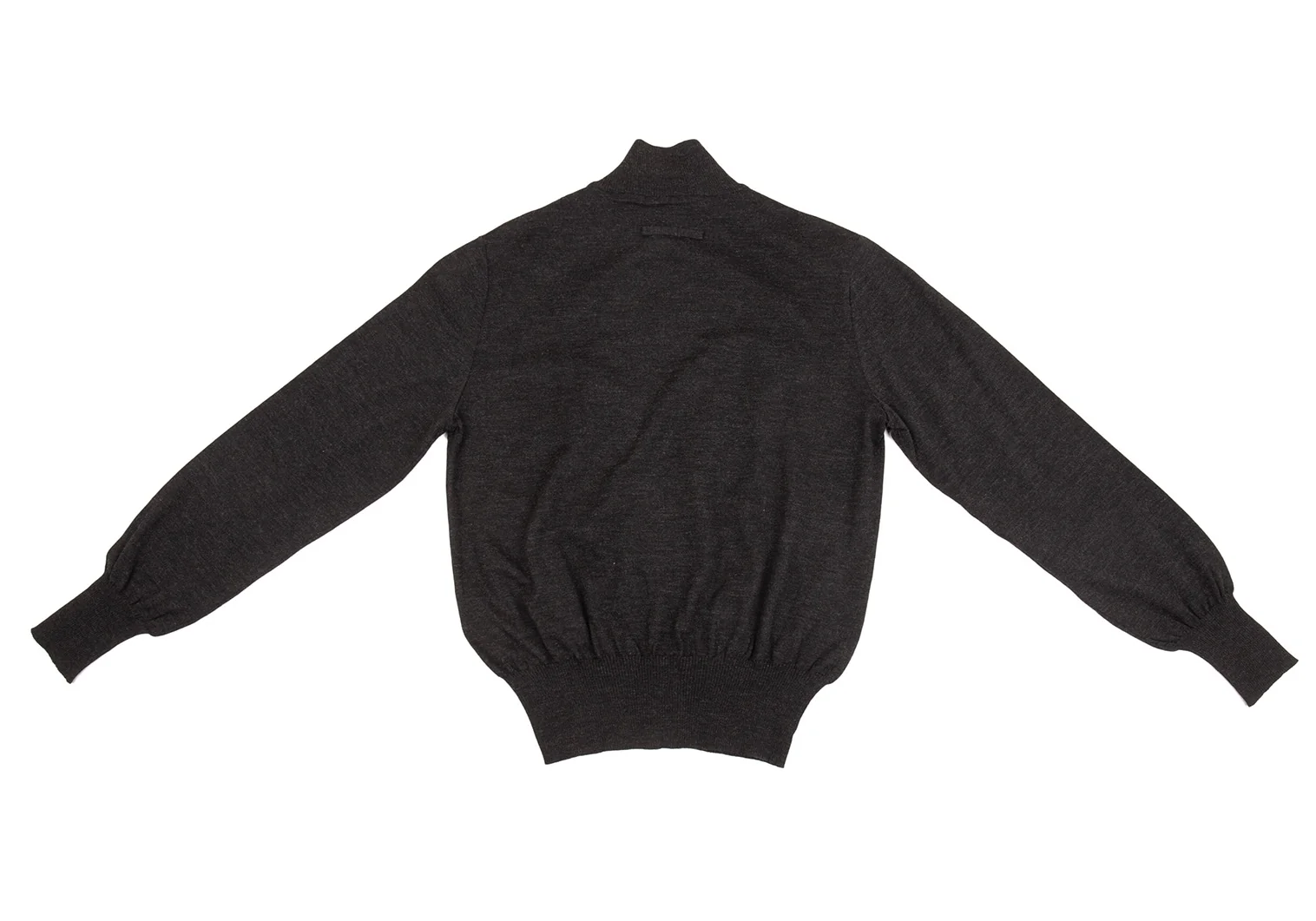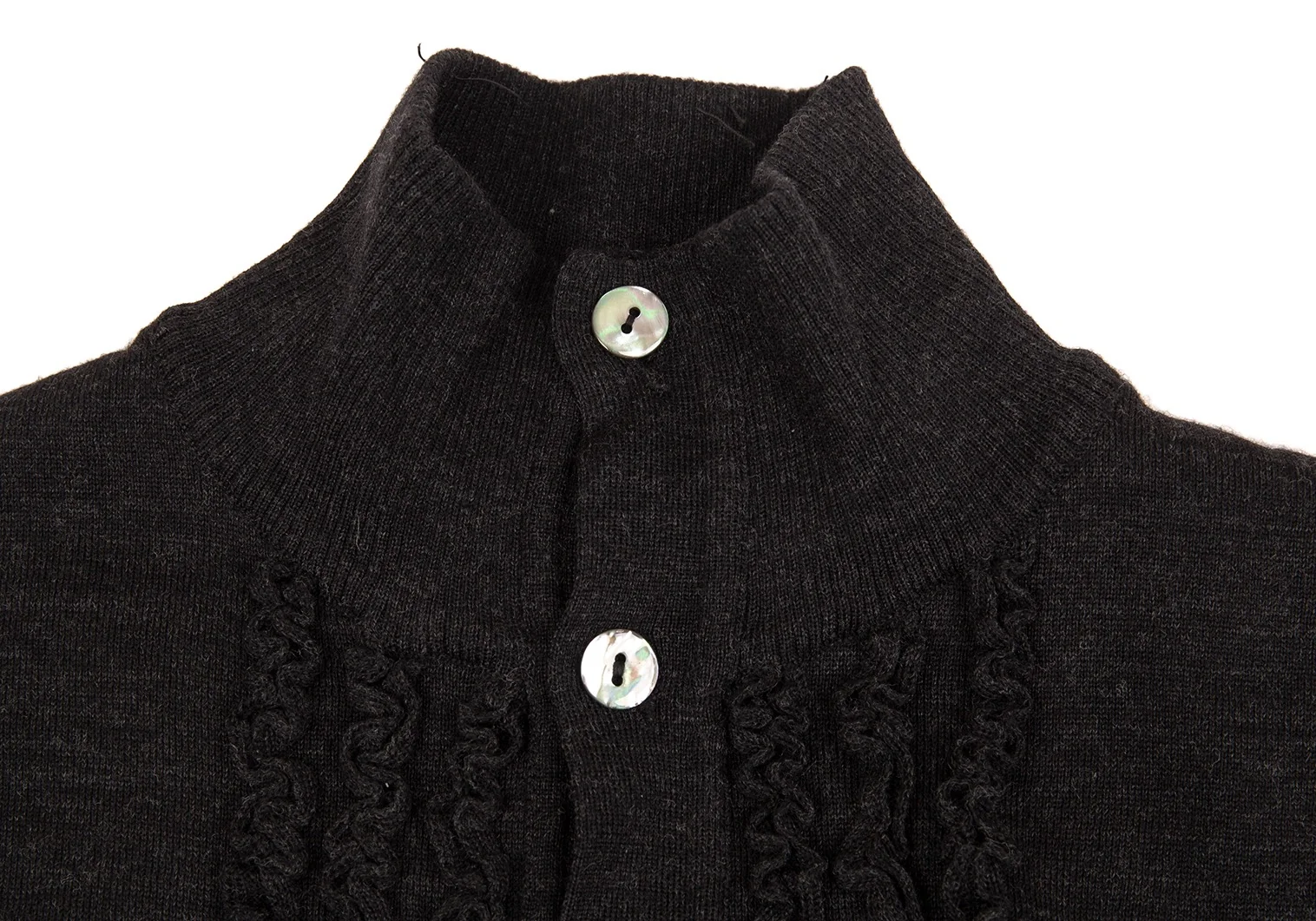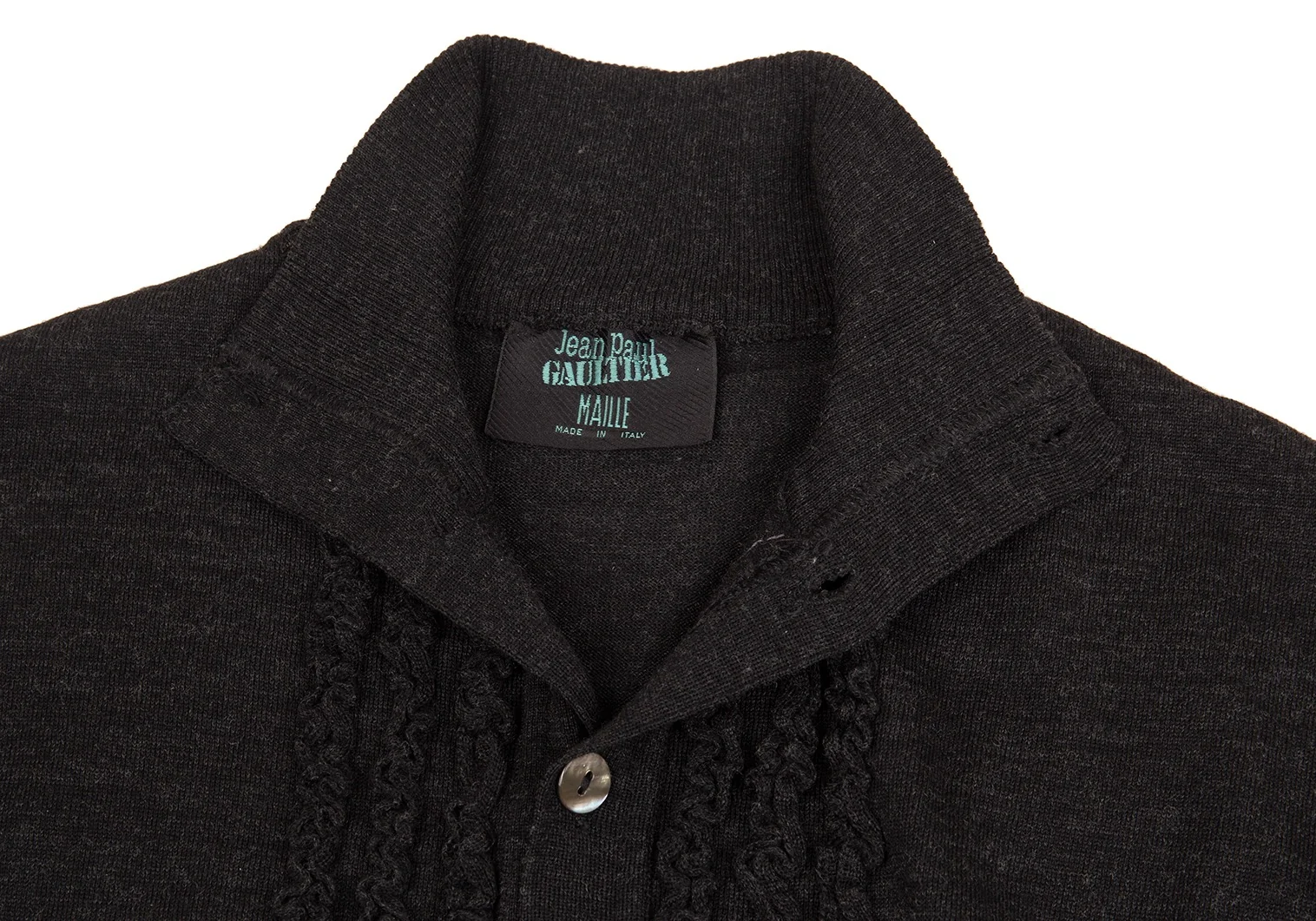 ジャンポールゴルチエ マイユJean Paul GAULTIER MAILLE ギャザー装飾ハイネックカーディガン チャコールM位