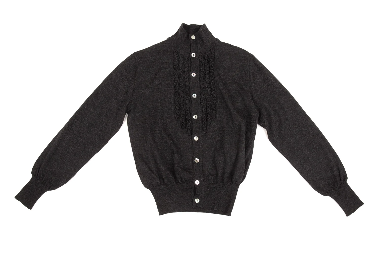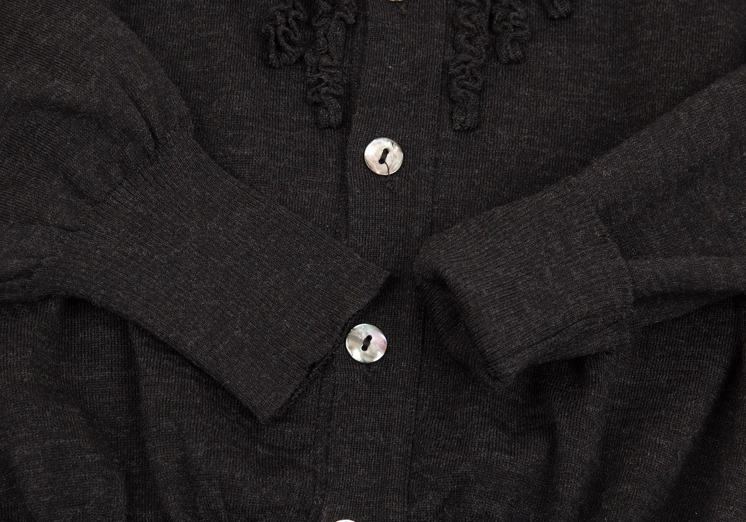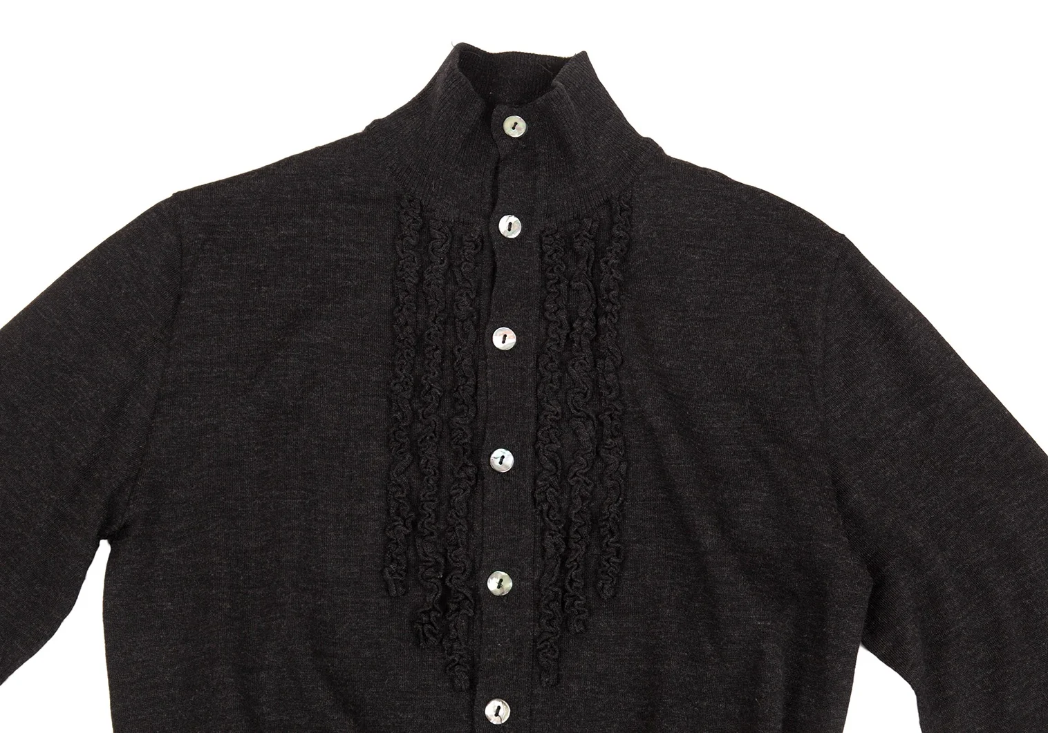 ジャンポールゴルチエ マイユJean Paul GAULTIER MAILLE ギャザー装飾ハイネックカーディガン チャコールM位