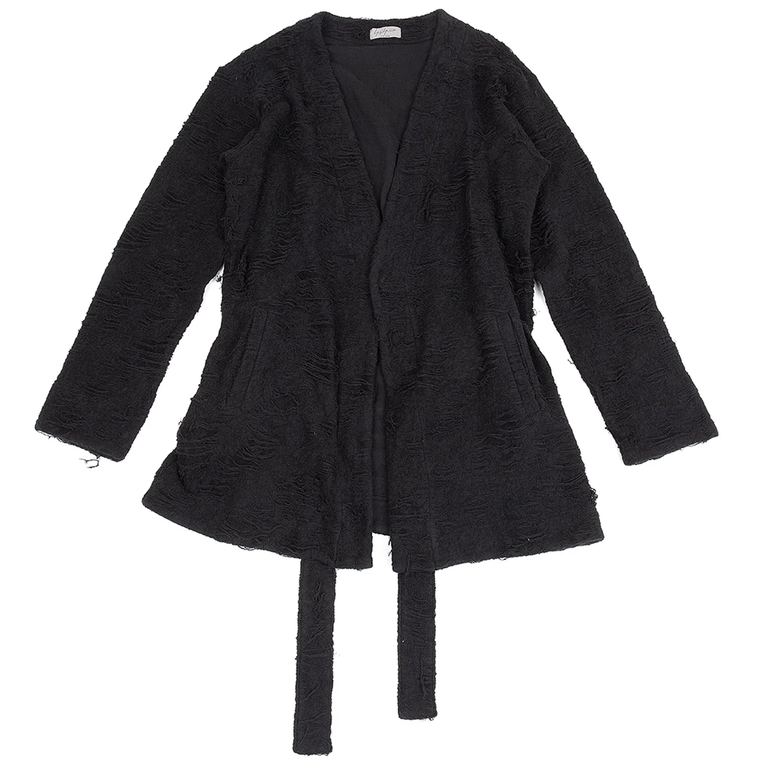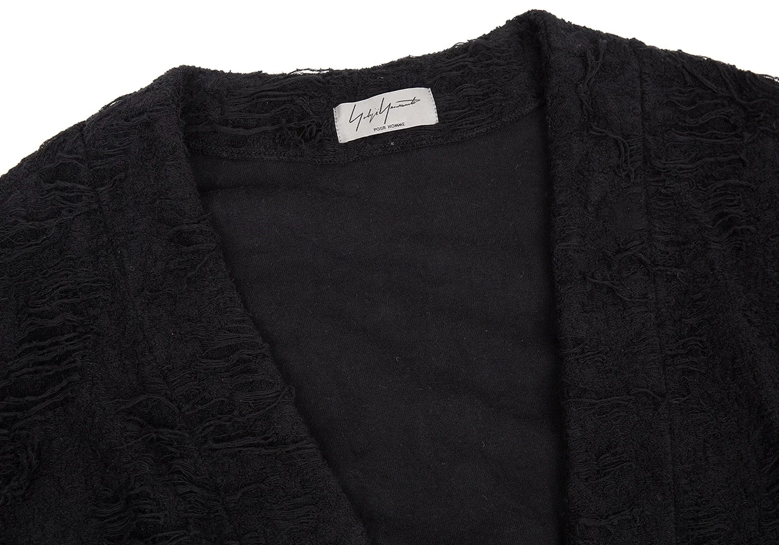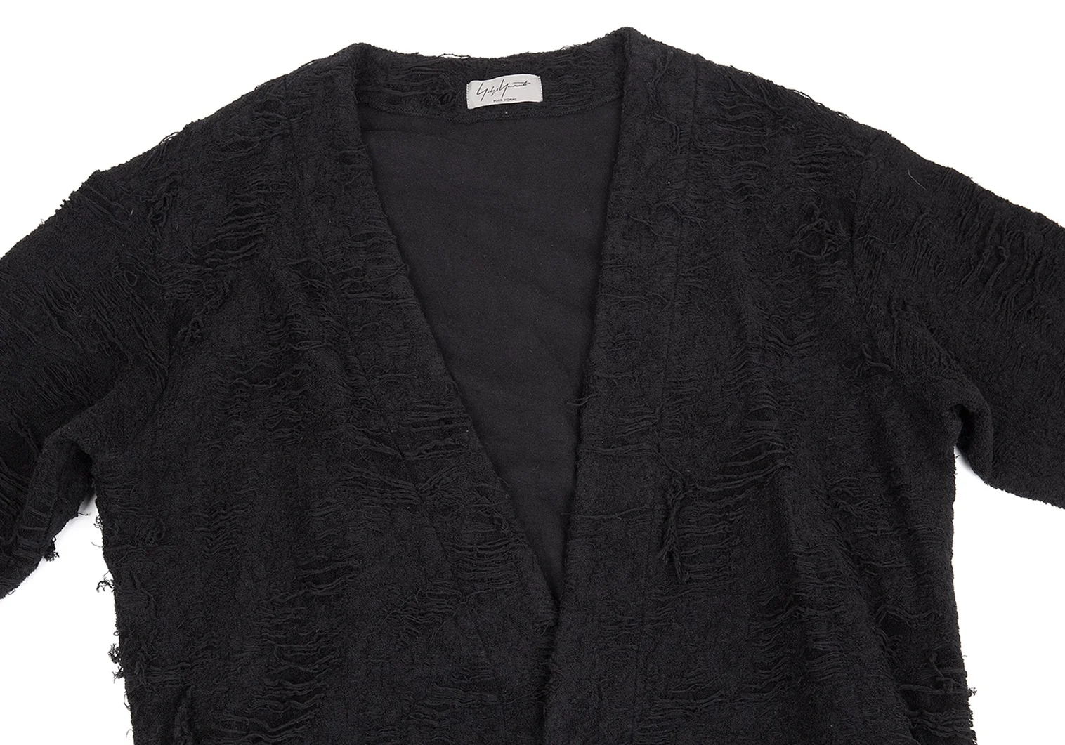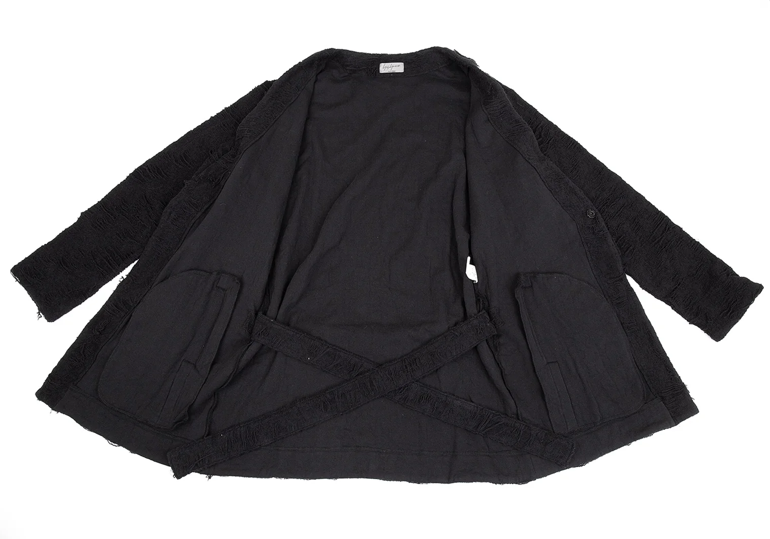 ヨウジヤマモト プールオムYohji Yamamoto POUR HOMME ダメージ加工パイルニットローブカーディガン 黒3
