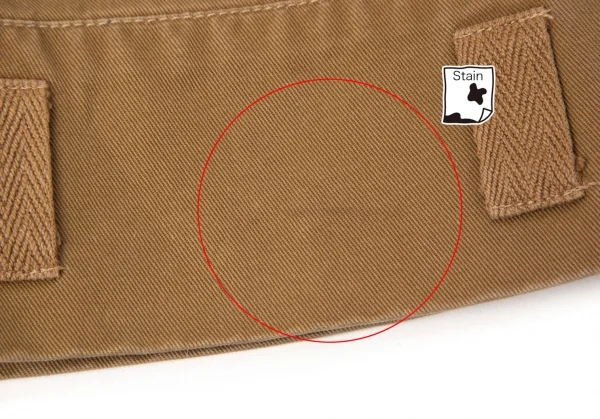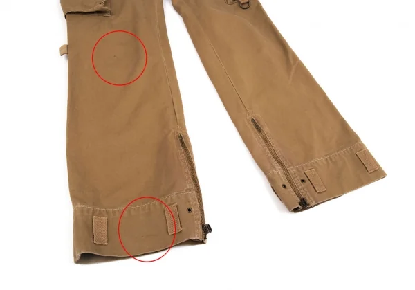 着用感、裾にダメージ・汚れ、右足に汚れがあります(写真参照)。クリーニング済み