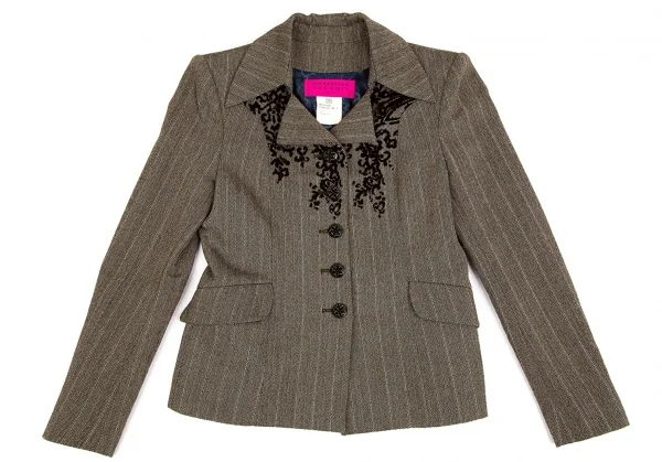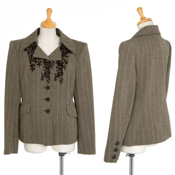 クリスチャンラクロワCHRISTIAN LACROIX フロッキーヘリンボーンジャケット ベージュ黒36