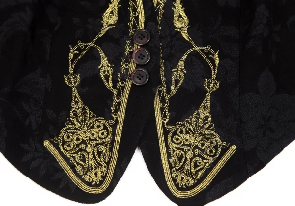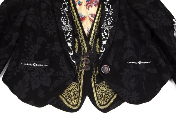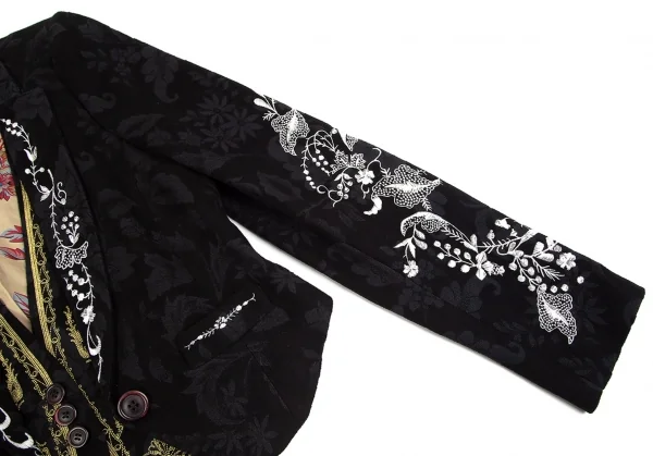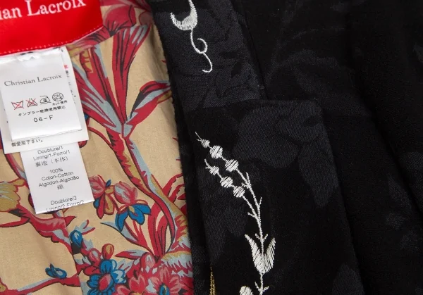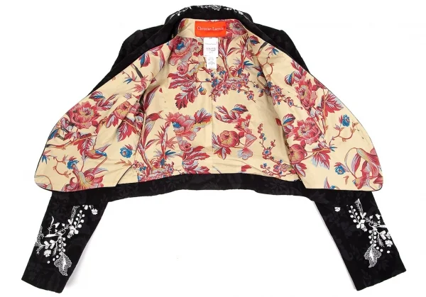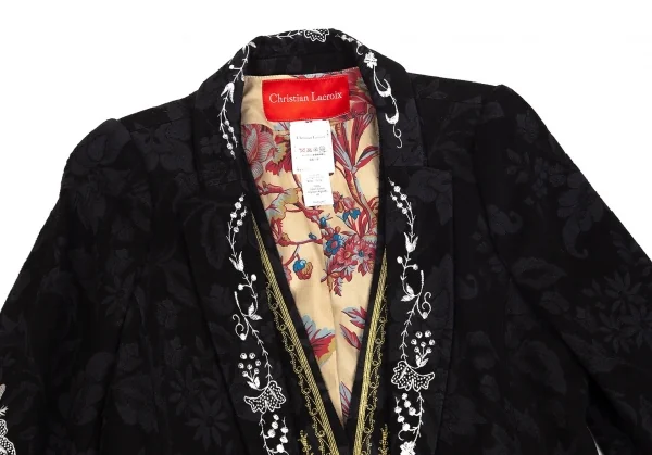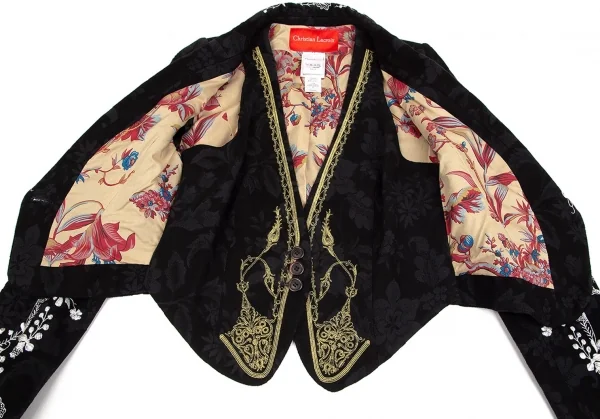 クリスチャンラクロワCHRISTIAN LACROIX ジレドッキング刺繍花柄スペンサージャケット 黒38