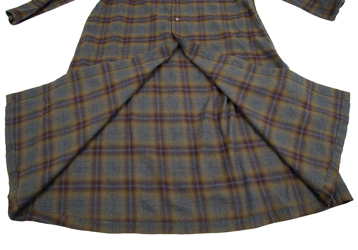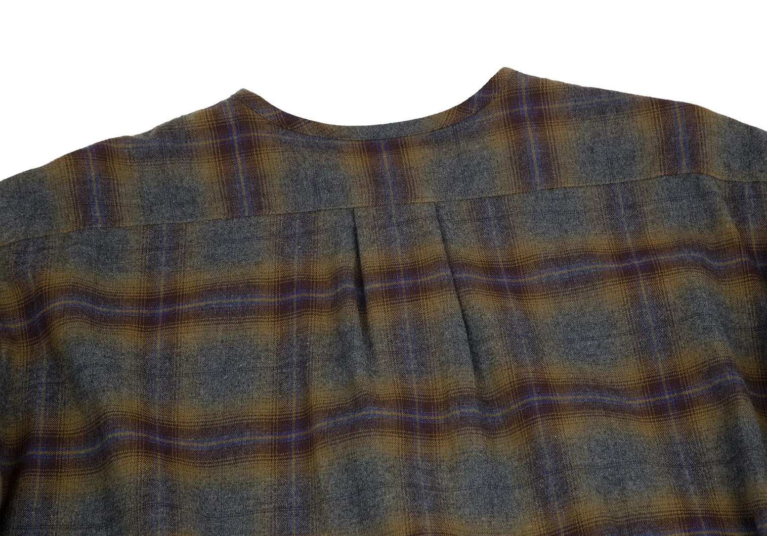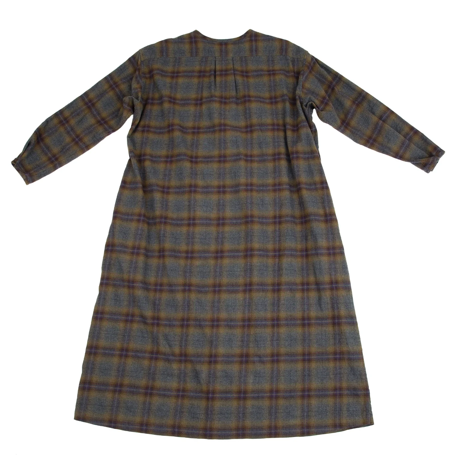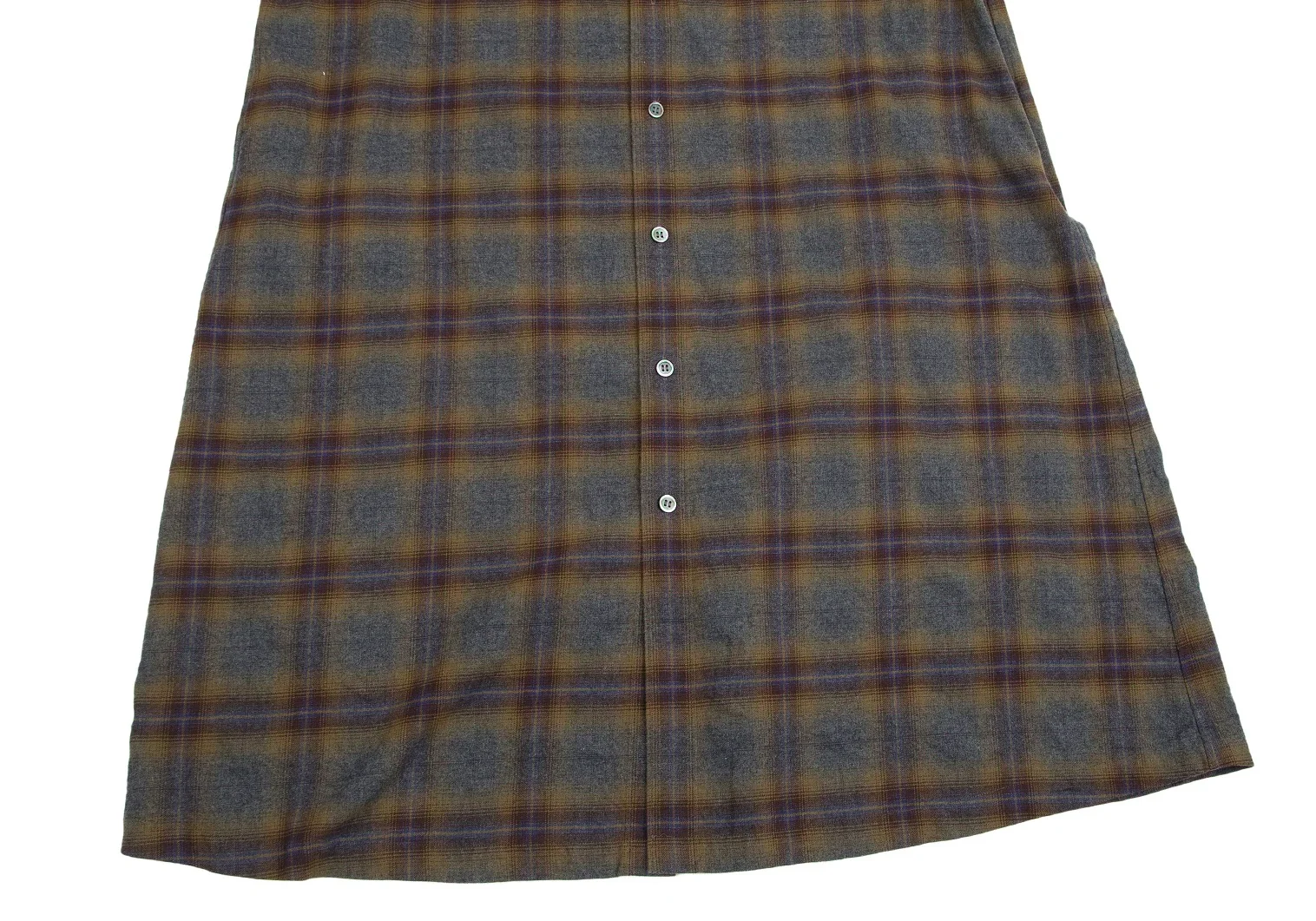 ズッカzucca ノーカラーチェックネルシャツワンピース 茶グレーM