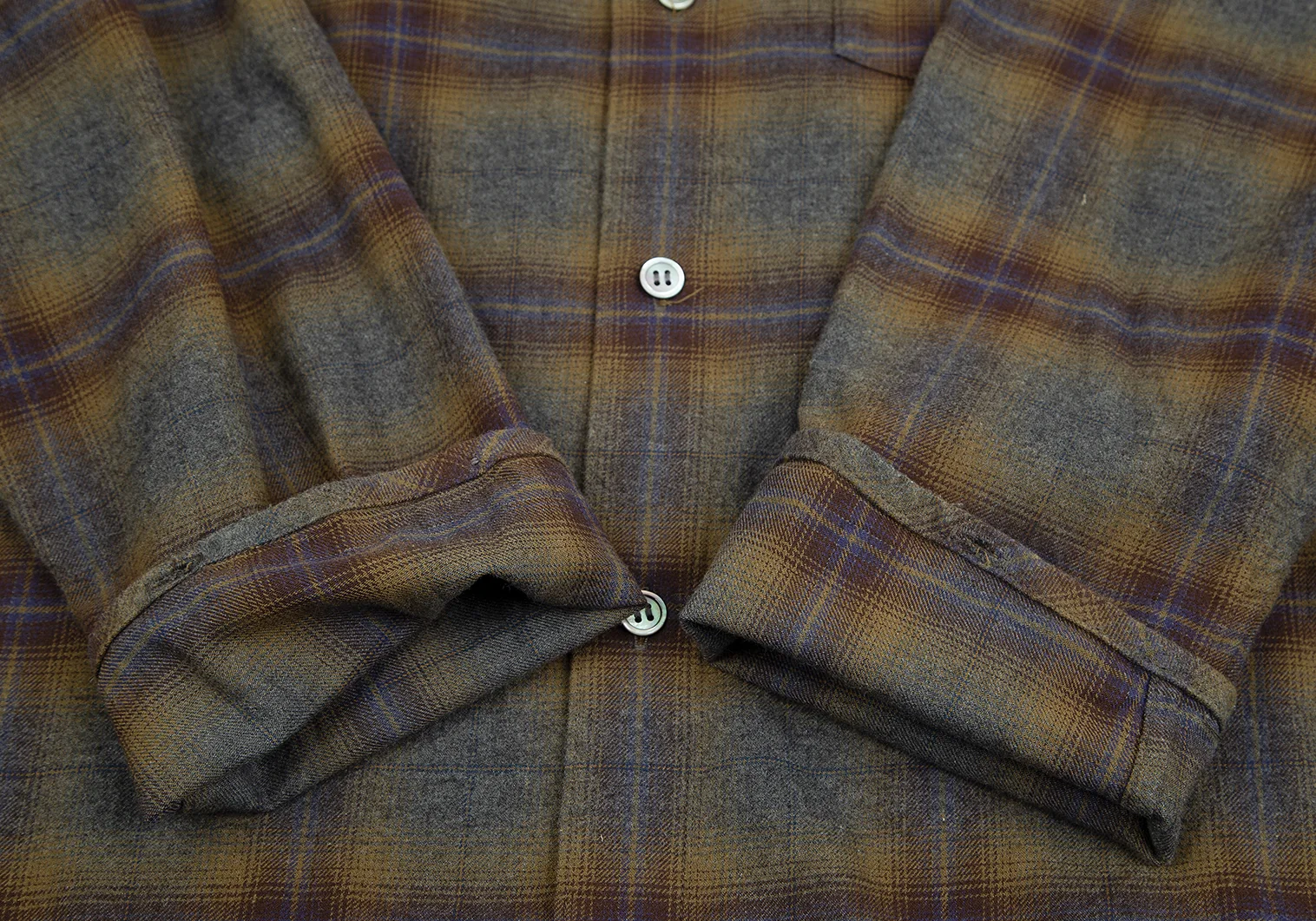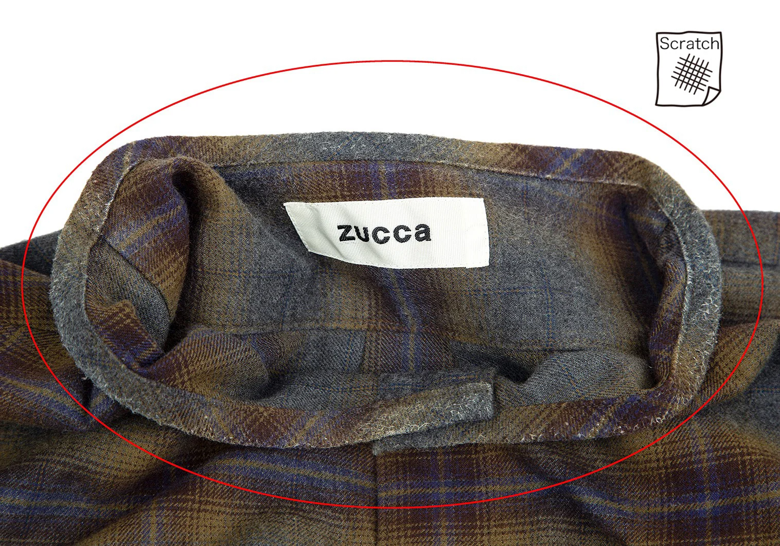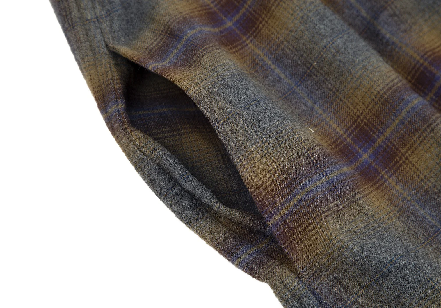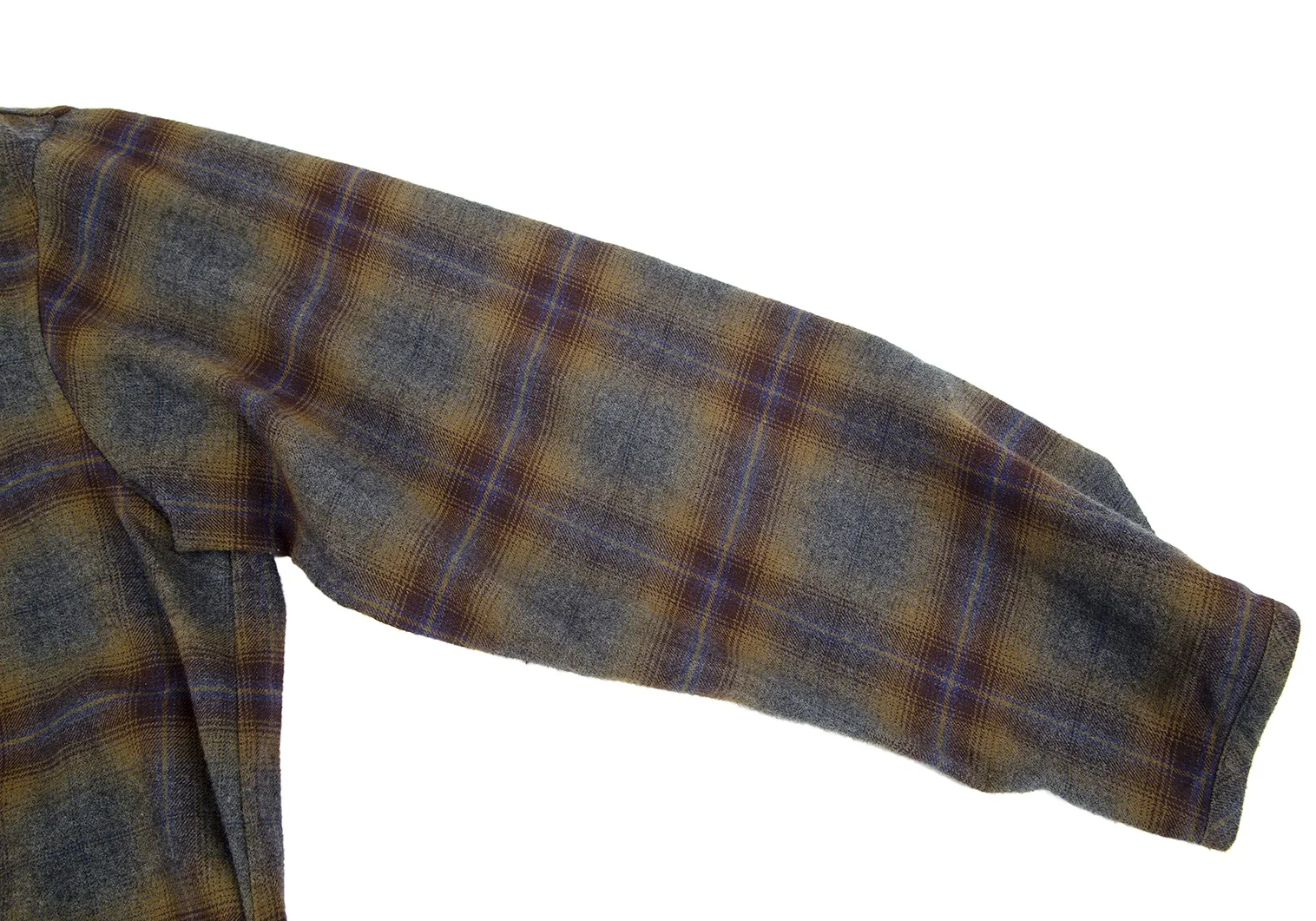 ズッカzucca ノーカラーチェックネルシャツワンピース 茶グレーM