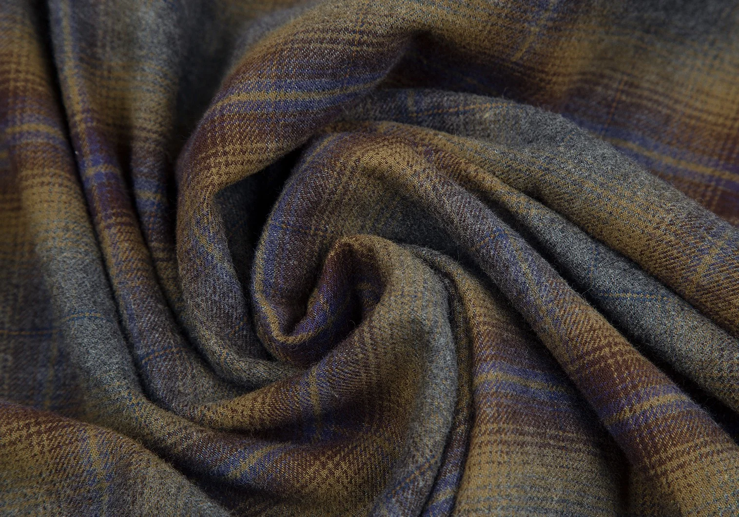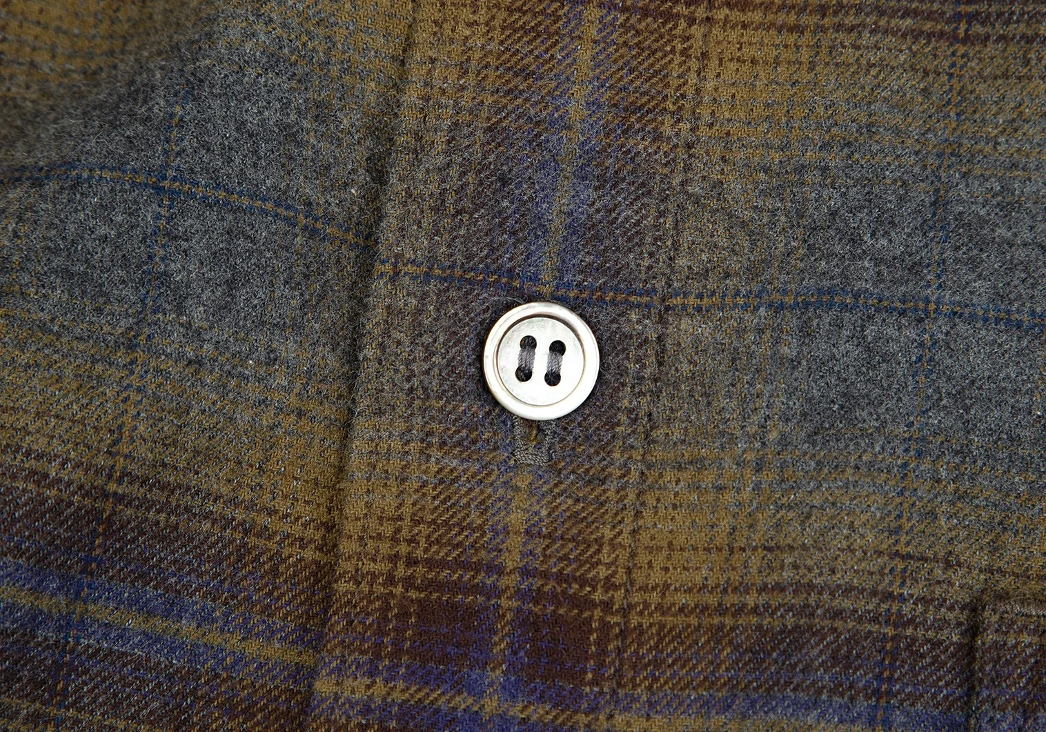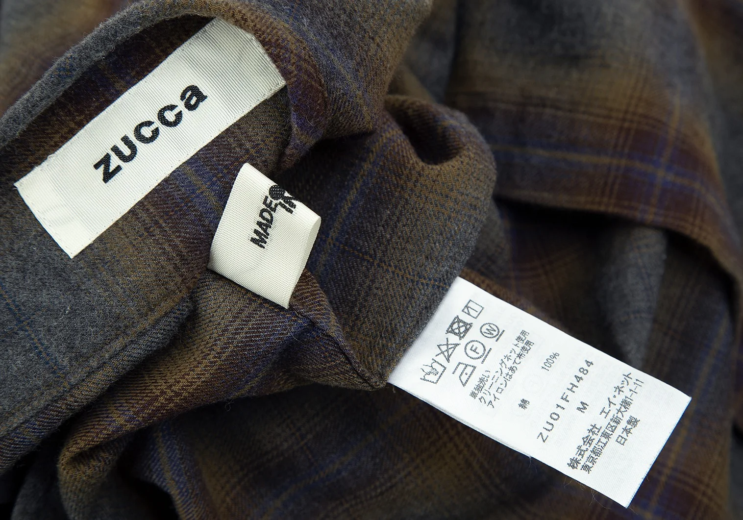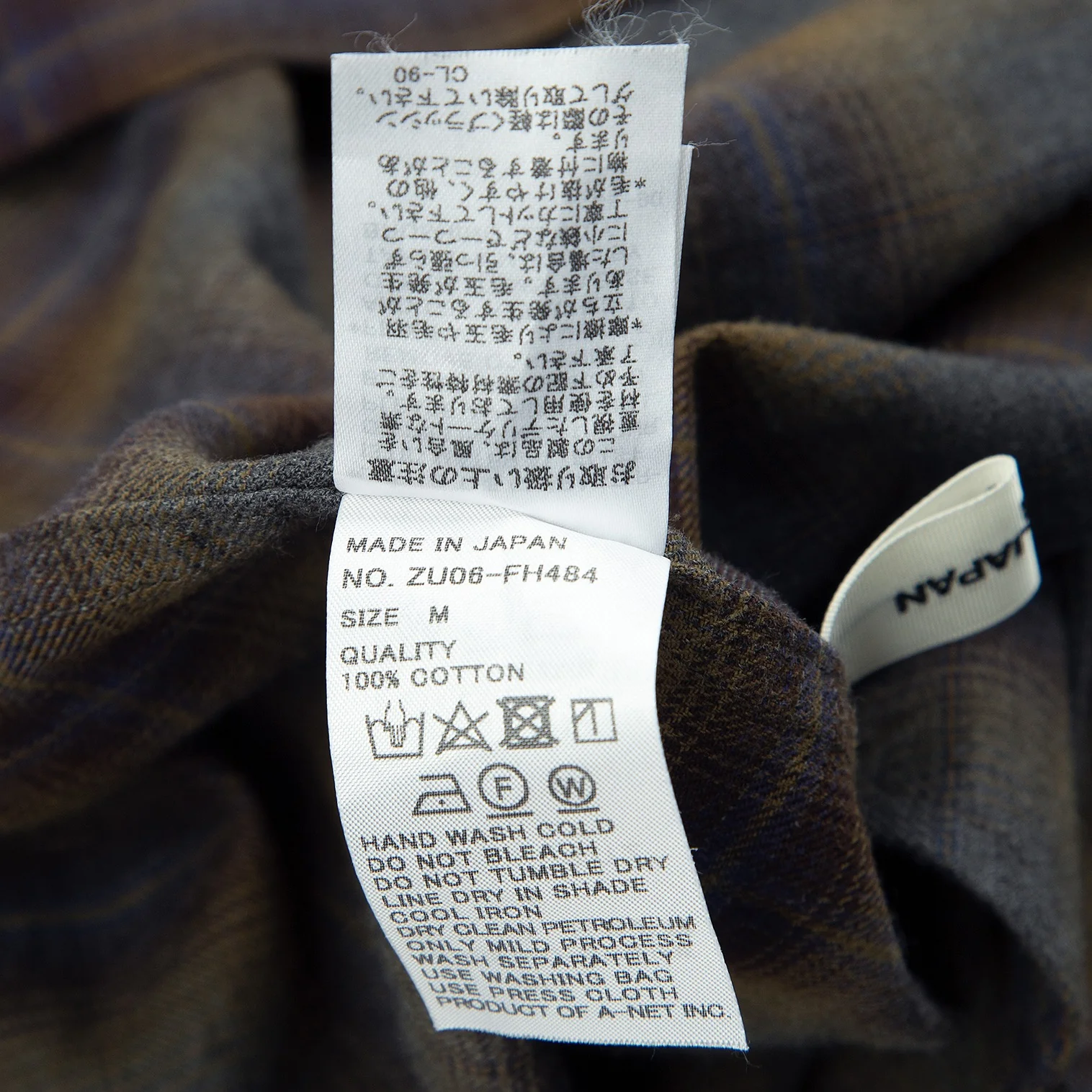 ズッカzucca ノーカラーチェックネルシャツワンピース 茶グレーM