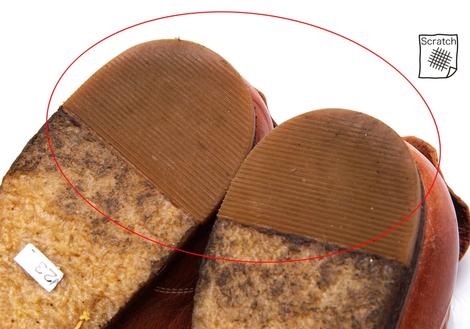 ソールに減りがあります(写真参照)。その他に目立ったシミ、汚れ、ほつれ等なくいい状態です。クリーニング済み