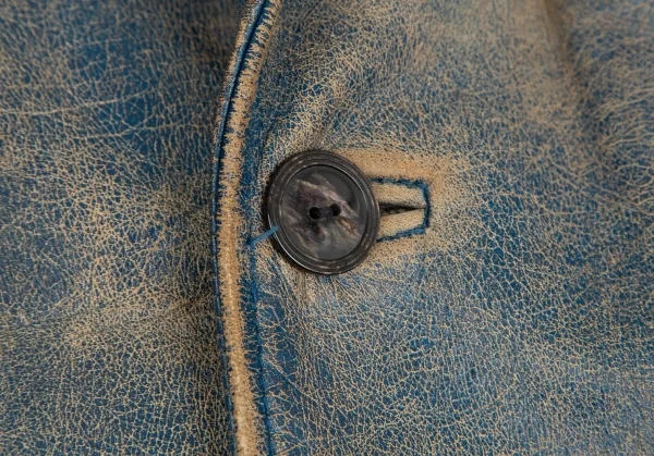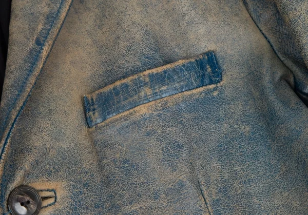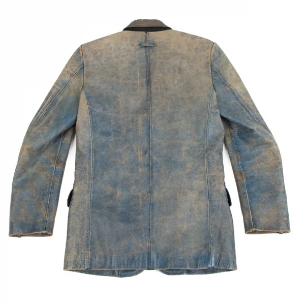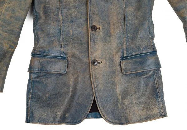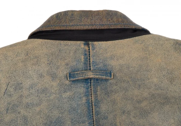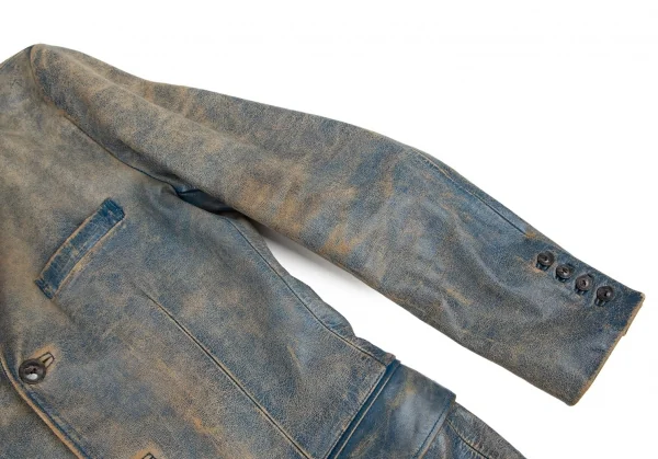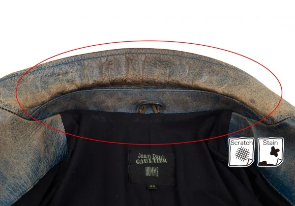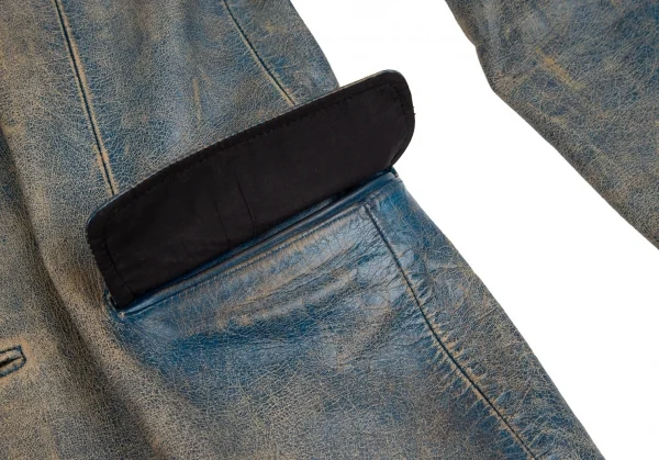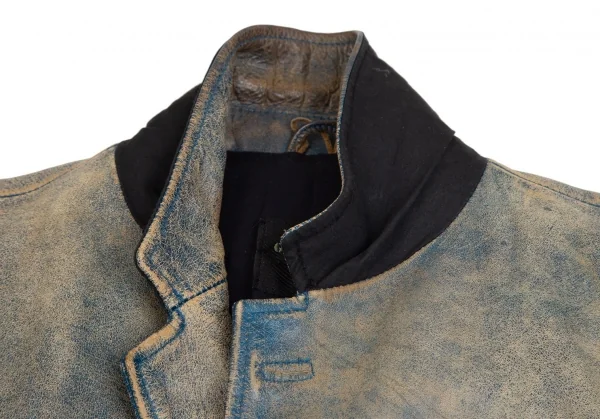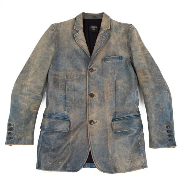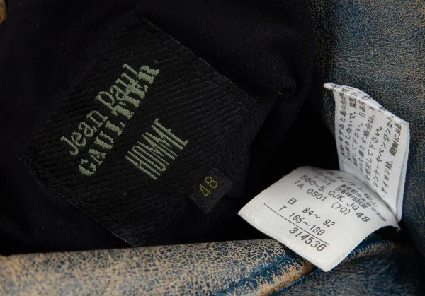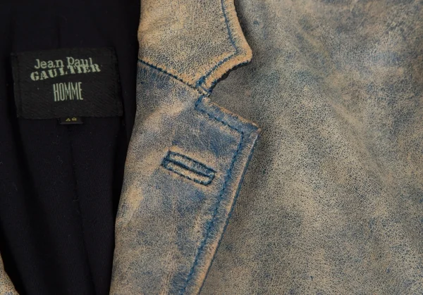 ジャンポールゴルチエ オムJean Paul GAULTIER HOMME ヴィンテージ加工レザージャケット 青ベージュ48