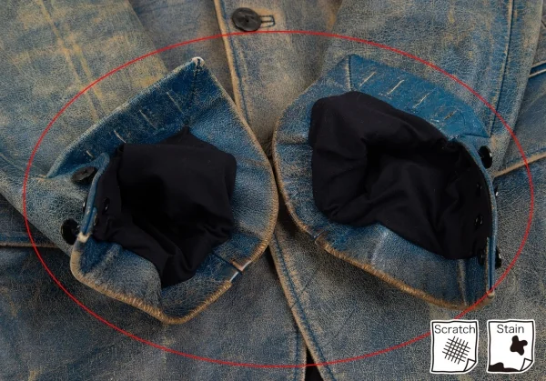 袖先・袖裏・襟裏にスレと汚れ、裏地に毛羽立ちがあります(画像参照)。その他目立ったシミ、汚れ、ほつれ等ありません。クリーニング済み