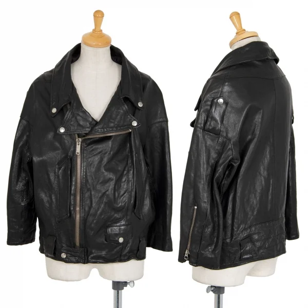 ゴールデングースGOLDEN GOOSE レザー変形ダブルライダースジャケット 黒XS