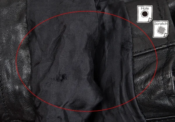 袖裏に擦れ穴があります(写真参照)。その他に目立ったシミ、汚れ、ほつれ等はありません。クリーニング済み