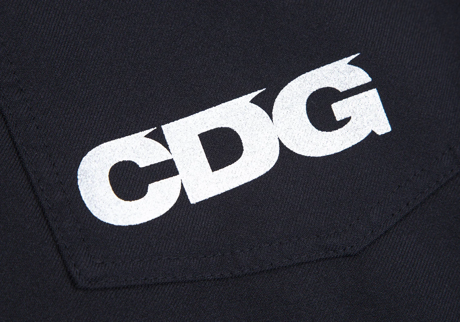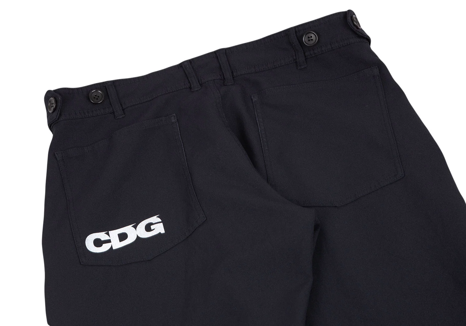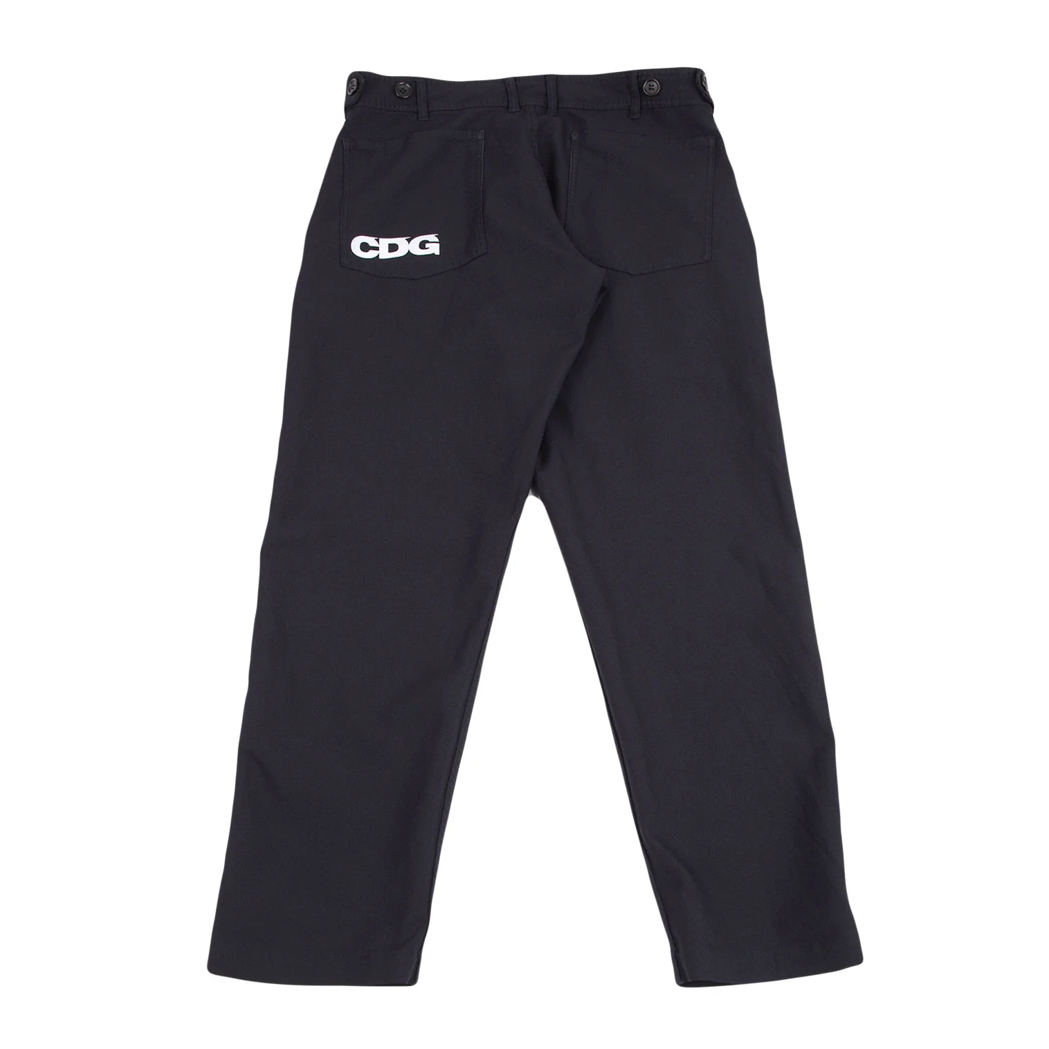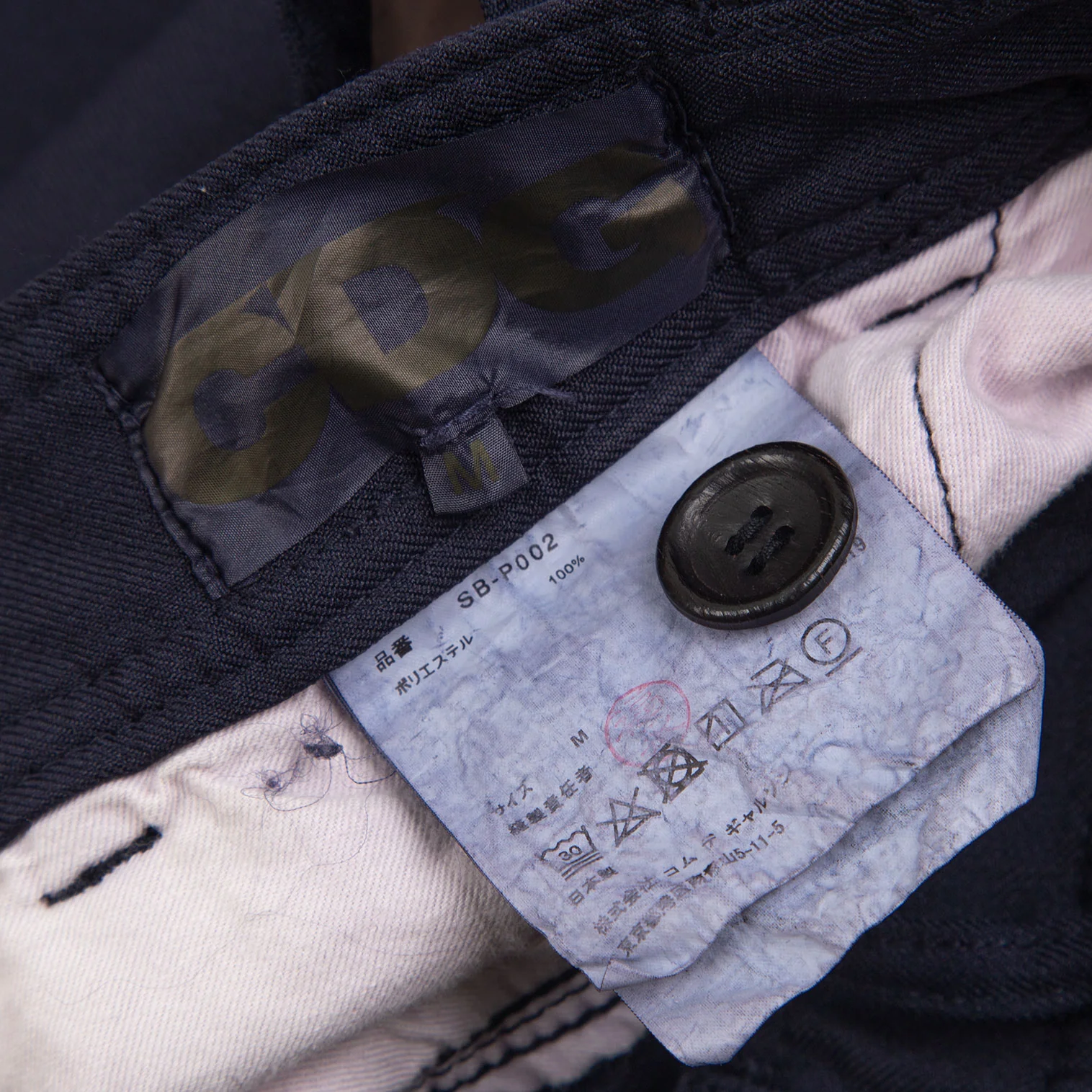 コムデギャルソンCDG バックポケットロゴプリントポリエステルヒップハングパンツ 紺M