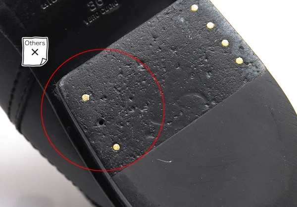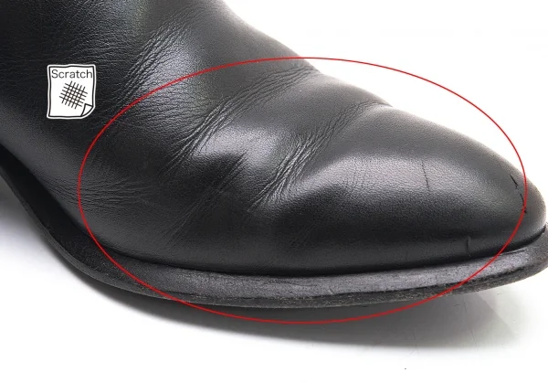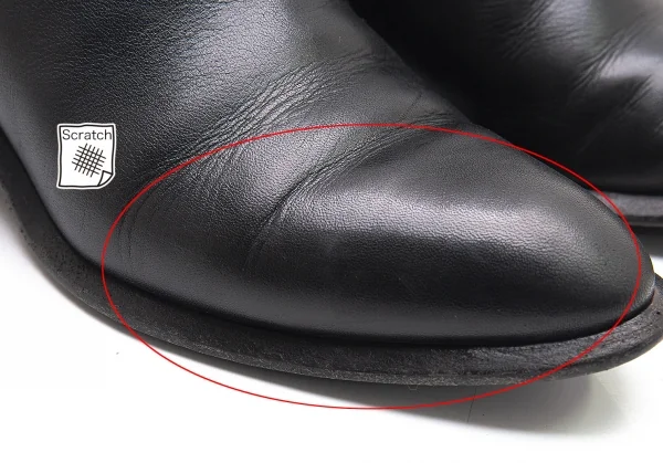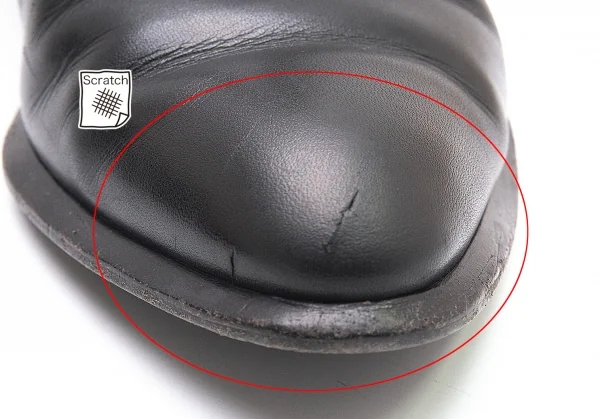 全体的にスレ・着用感あり。爪先傷があります、着用に問題はありませんが左足踵釘抜けています(写真参照)。