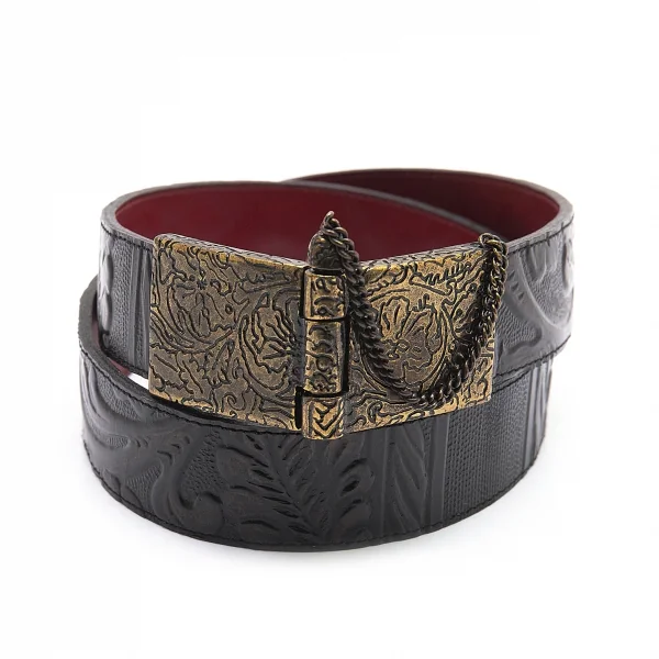 ケンゾーKENZO 型押しチェーンバックルベルト 黒75 30