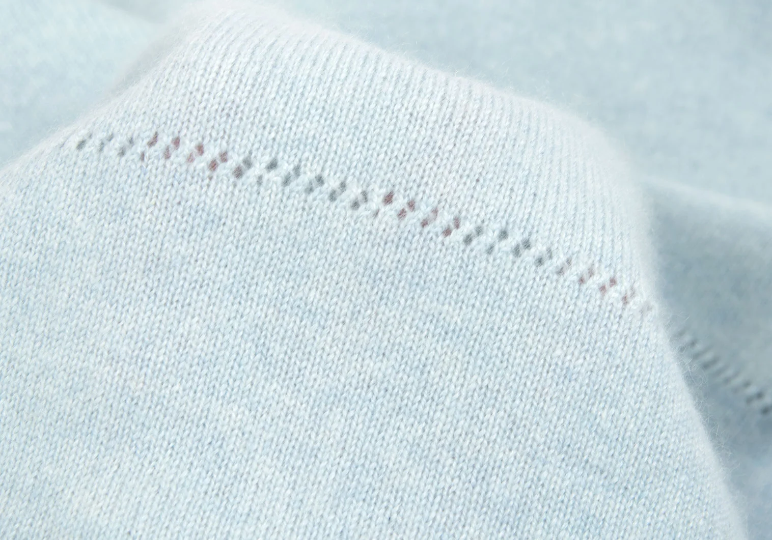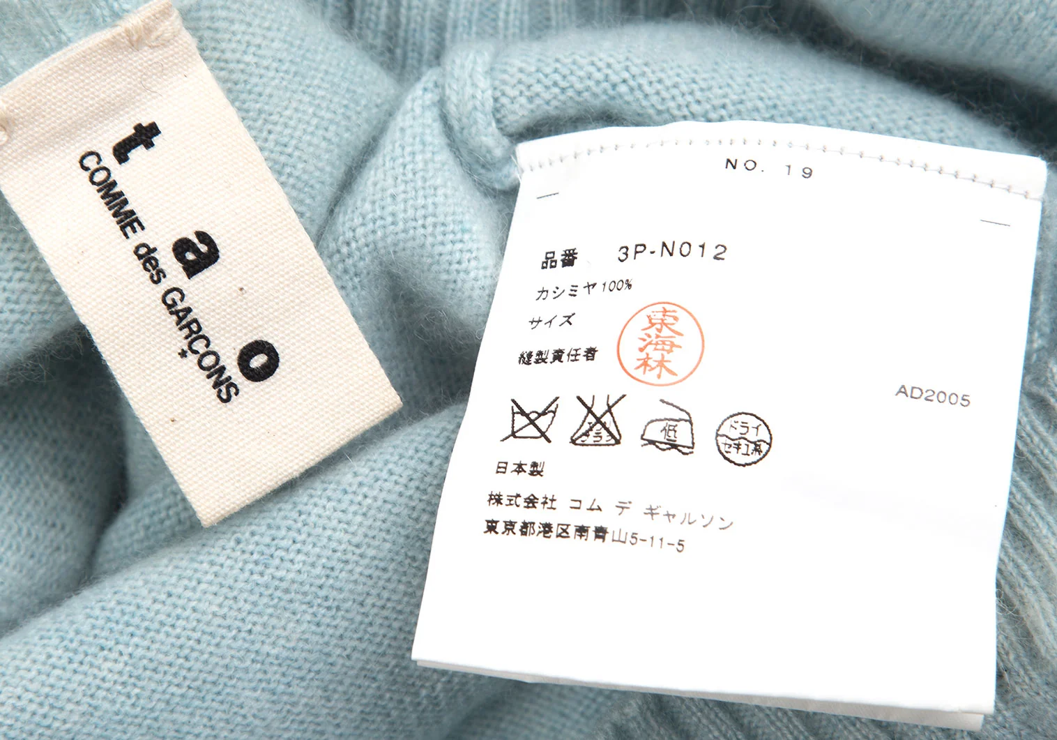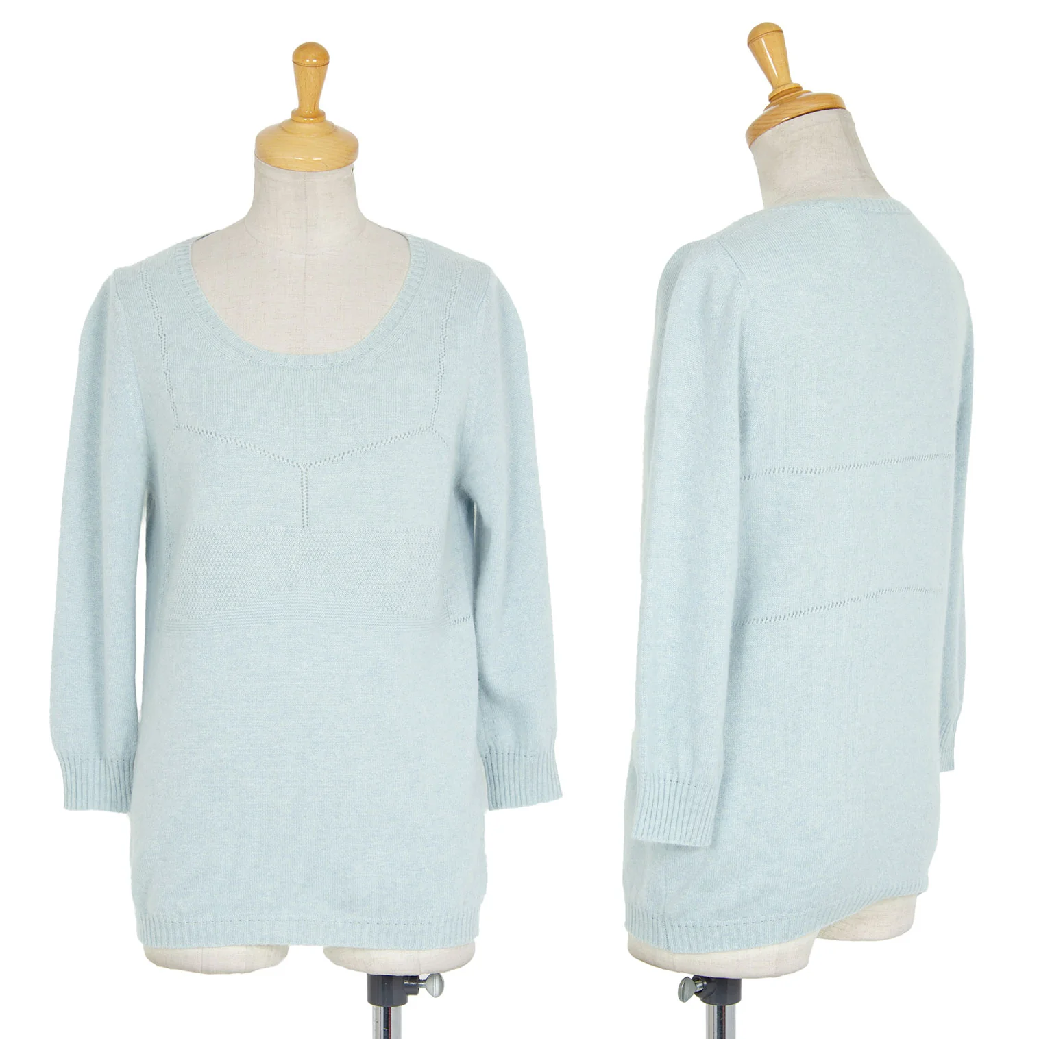 タオ コムデギャルソンtao COMME des GARCONS バスト切替デザインクルーネック七分丈カシミヤニット 水色M位