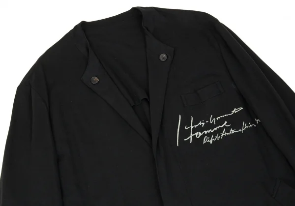 ヨウジヤマモト プールオムYohji Yamamoto POUR HOMMEロゴプリント天竺ノーカラーコート 黒M
