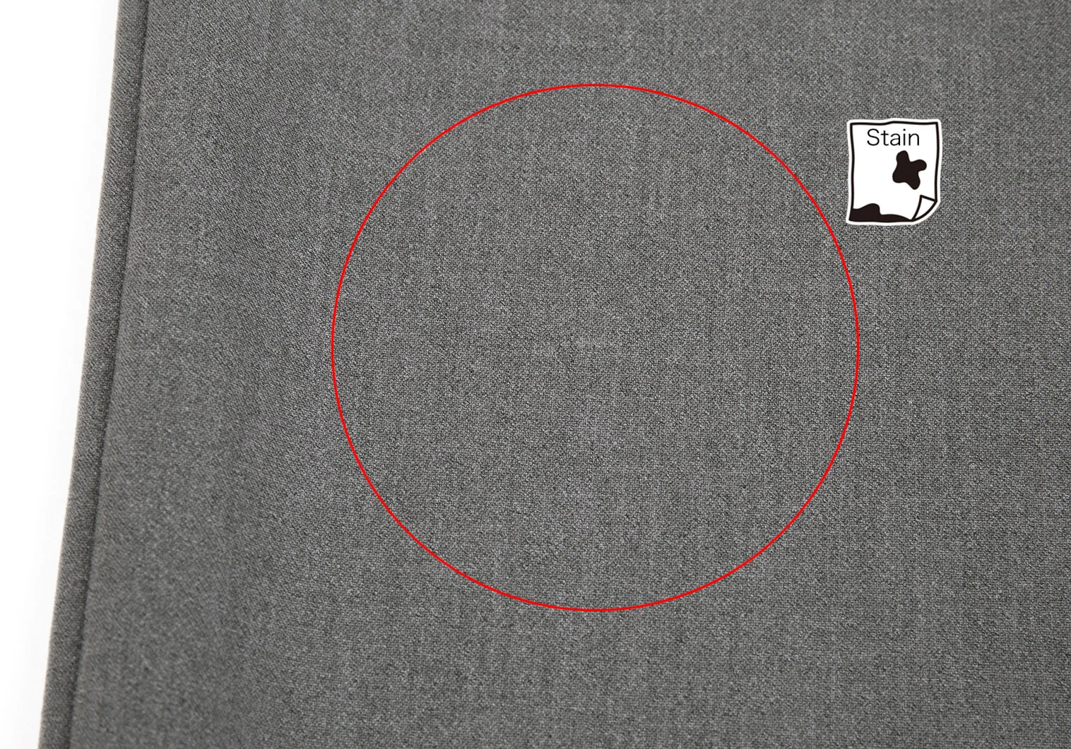 後ろ左足に薄シミがあります(写真参照)。その他に目立ったシミ、汚れ、ほつれ等なくいい状態です。クリーニング済み