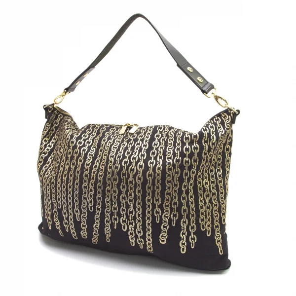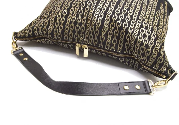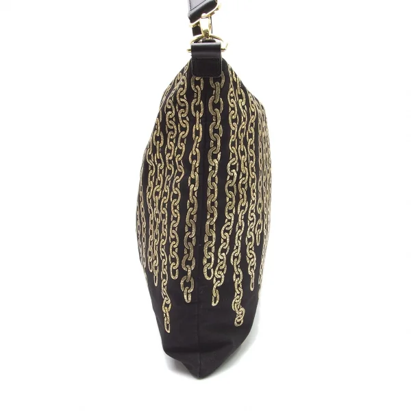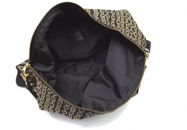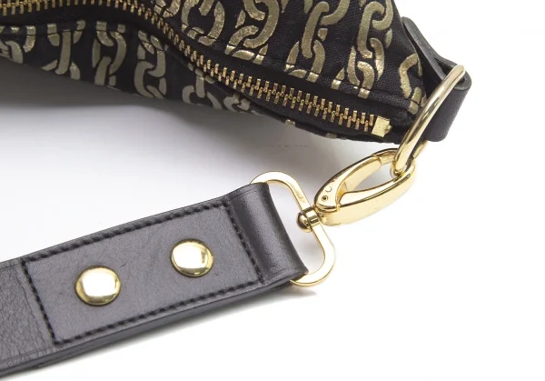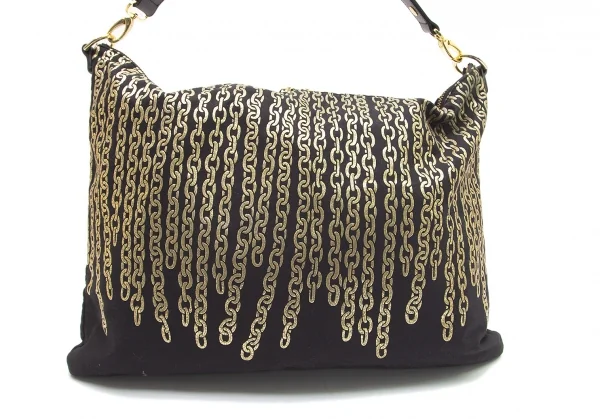 プリーツプリーズPLEATS PLEASE ゴールドチェーンプリントショルダーバッグ 黒ゴールド