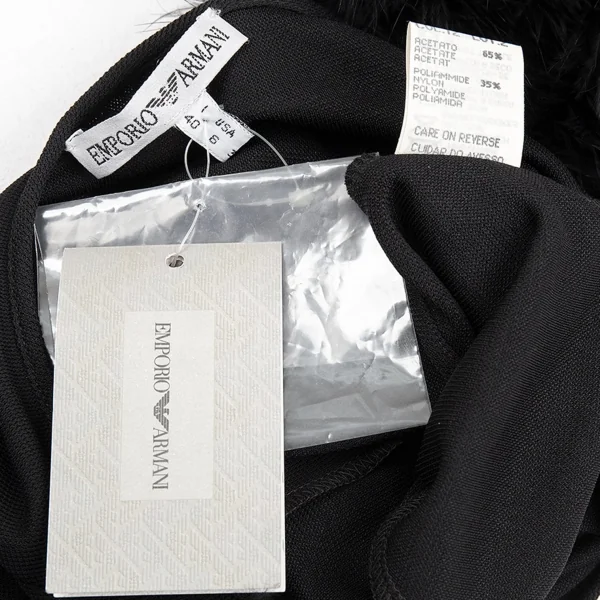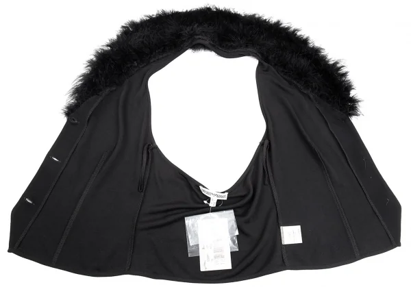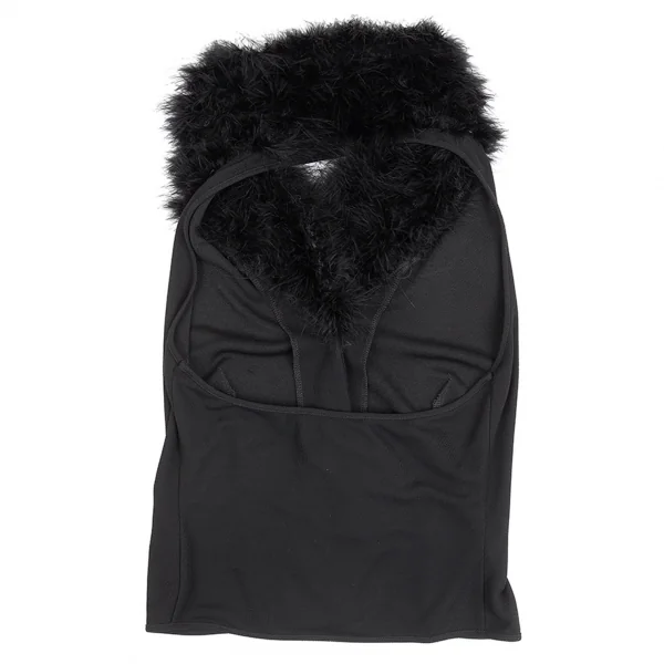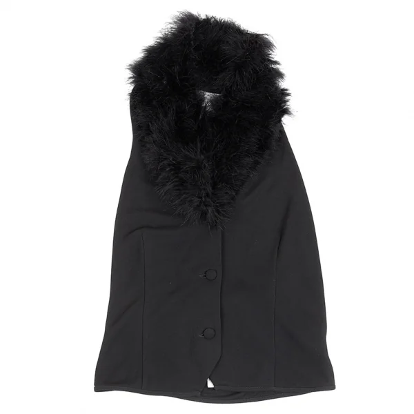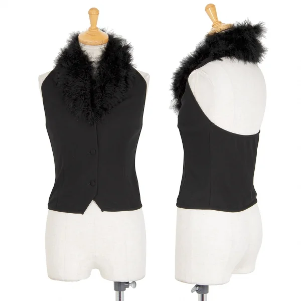 エンポリオアルマーニEMPORIO ARMANI ファー装飾メッシュホルターネックジレベスト 黒40
