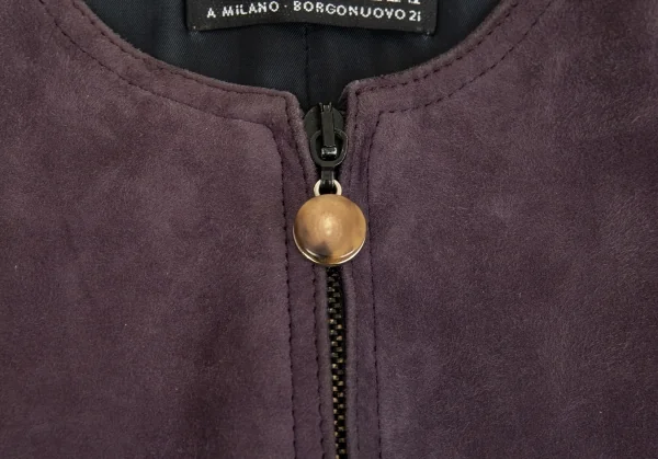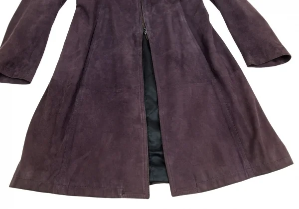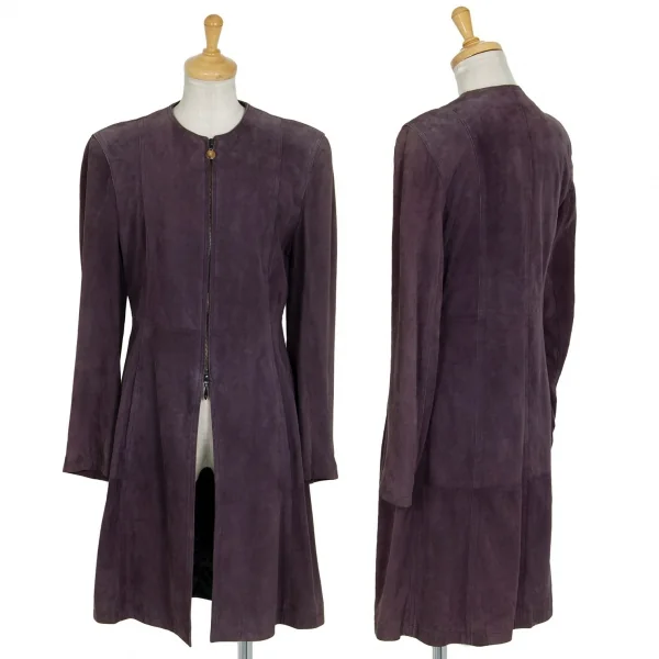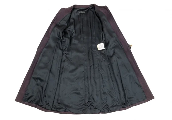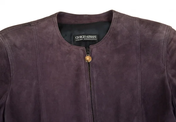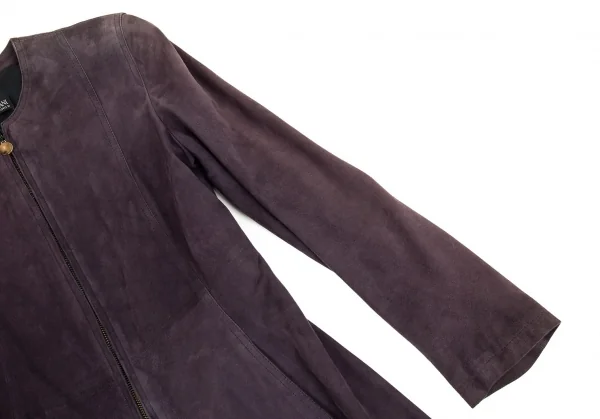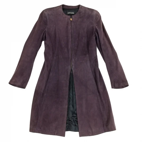 ジョルジオ アルマーニGIORGIO ARMANI ゴートスウェードノーカラーロングジャケット 紫40