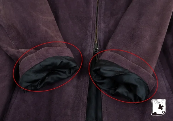 首回りに薄汚れ、袖・袖先にヤケ、袖口スレ、袖裏に汚れ、後ろ裾にスレ・汚れがあります(画像参照)。その他目立ったシミ、汚れ、ほつれ等ありません。クリーニング済み