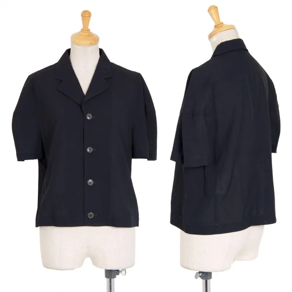トリココムデギャルソンtricot COMME des GARCONS サマーウールオープンカラー半袖シャツ 紺M位