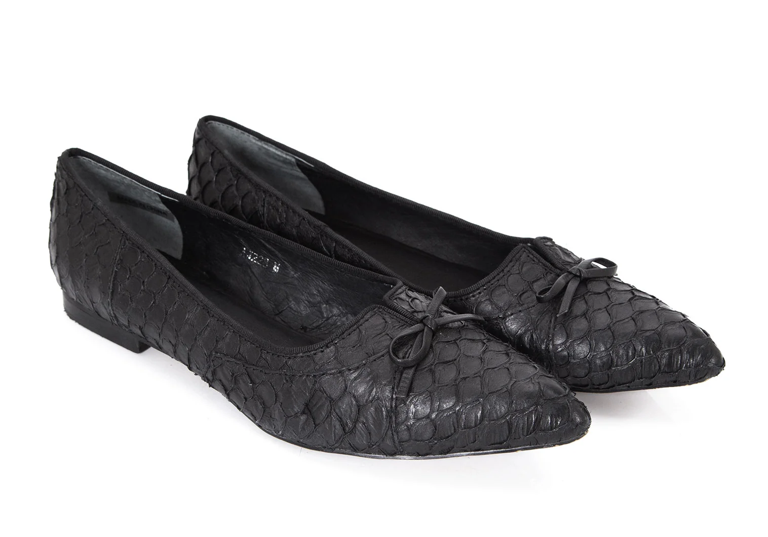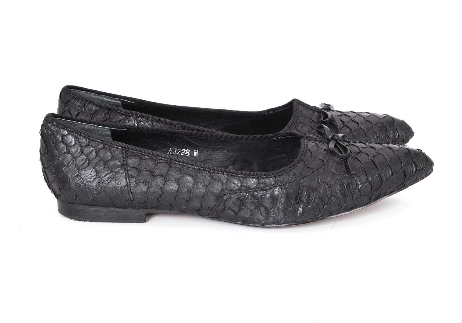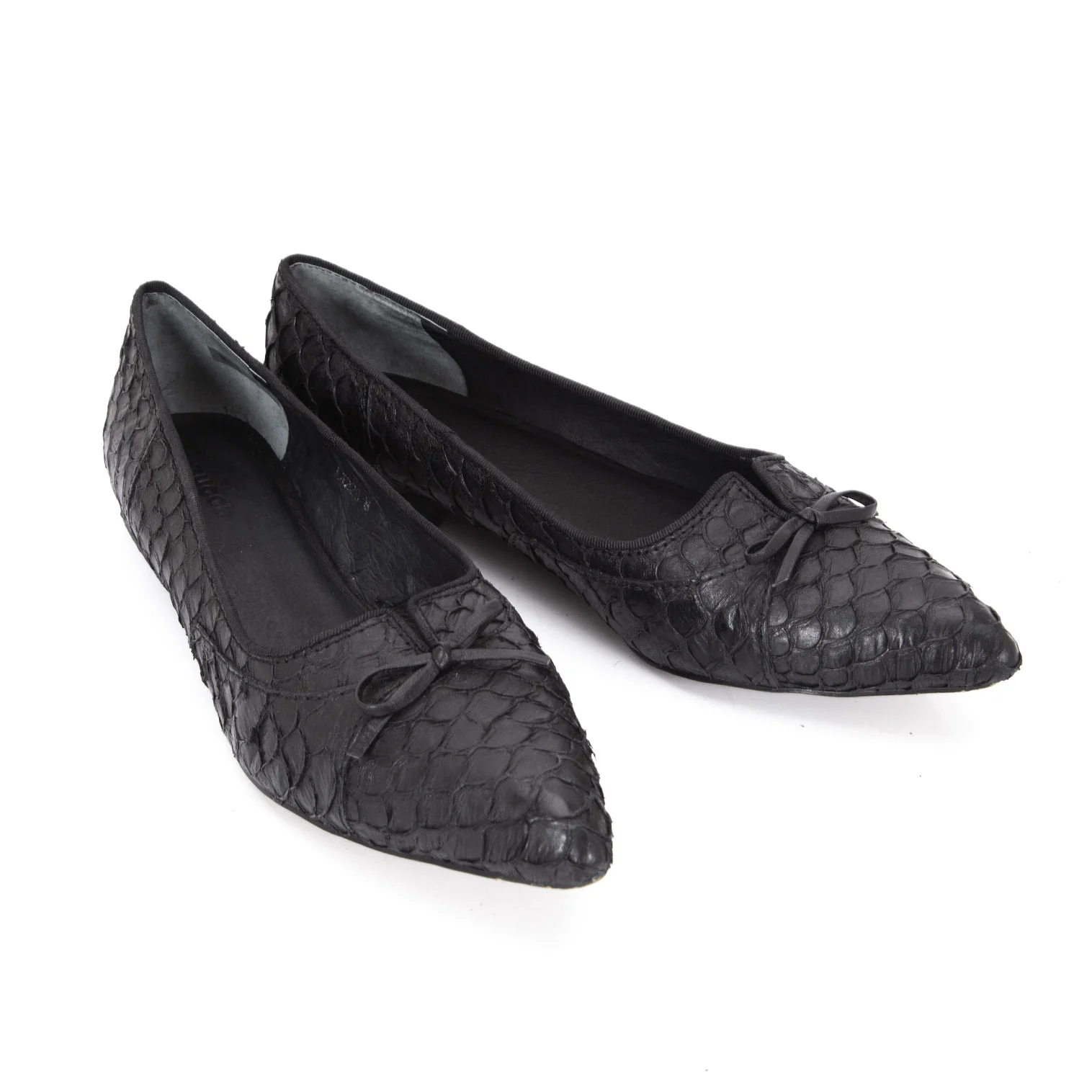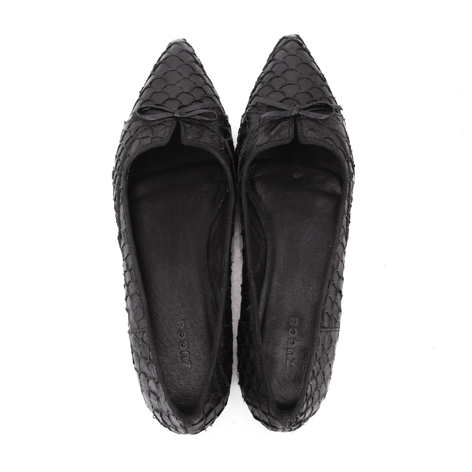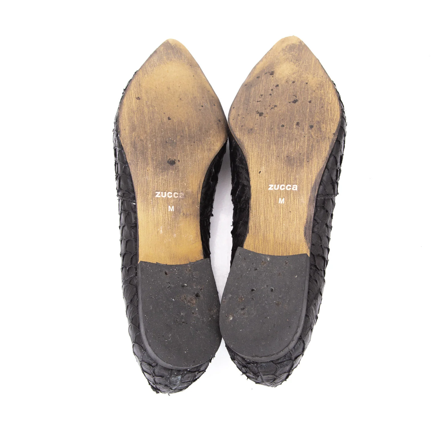 ズッカzucca スケールレザーポインテッドトゥシューズ 黒M(24位)