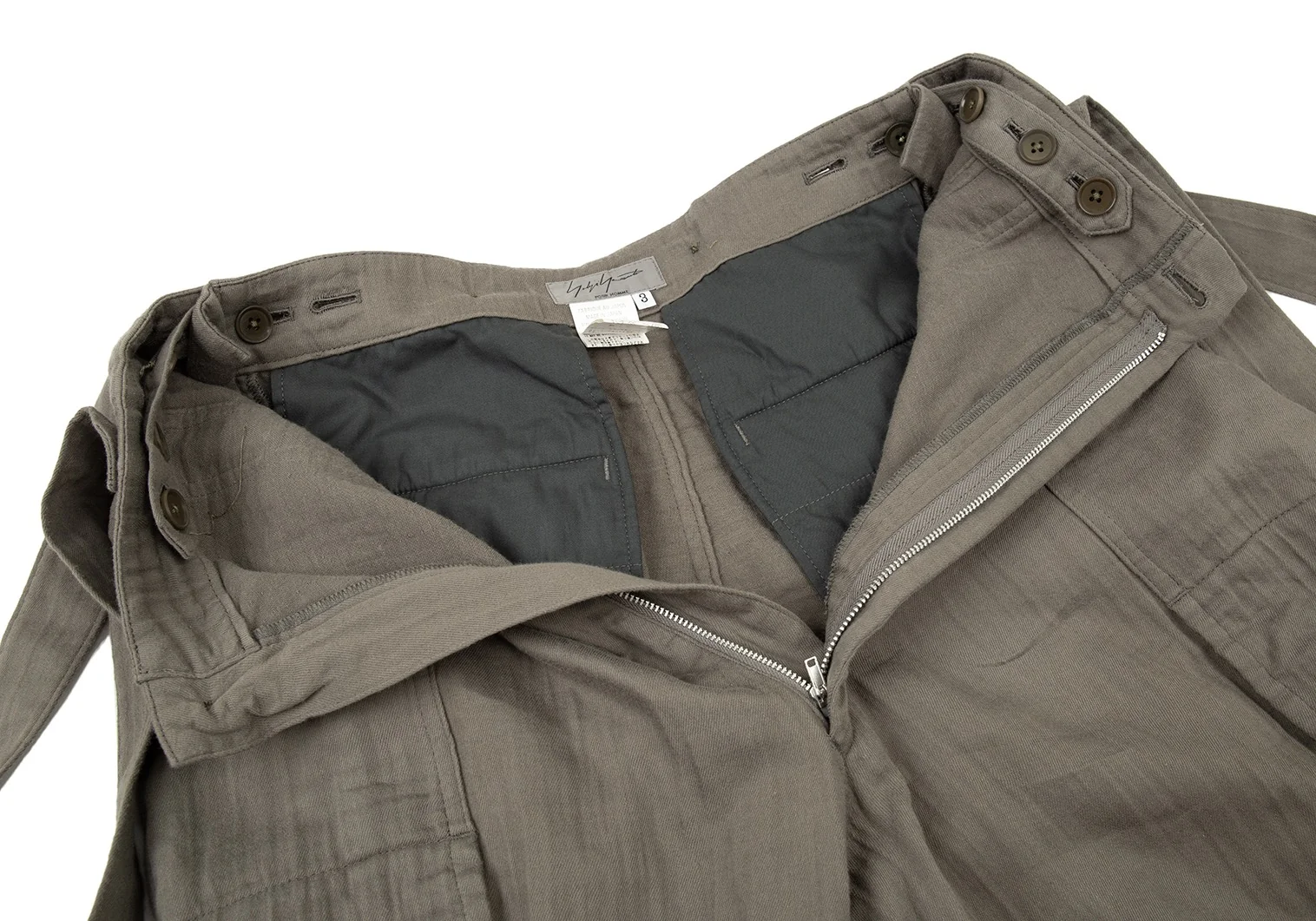 ヨウジヤマモト プールオムYohji Yamamoto POUR HOMME 敗残兵コットンサスペンダーカーゴパンツ カーキ3