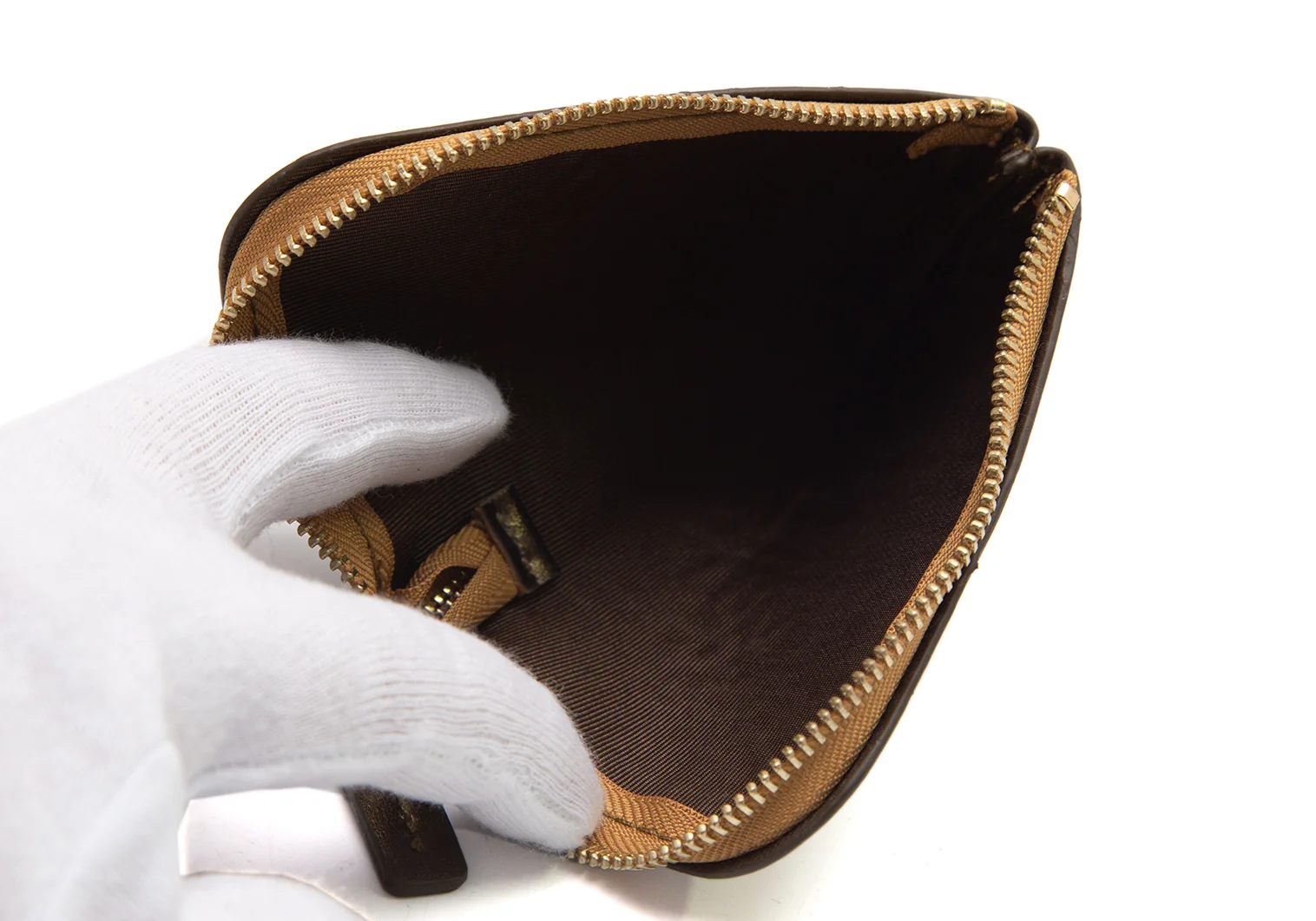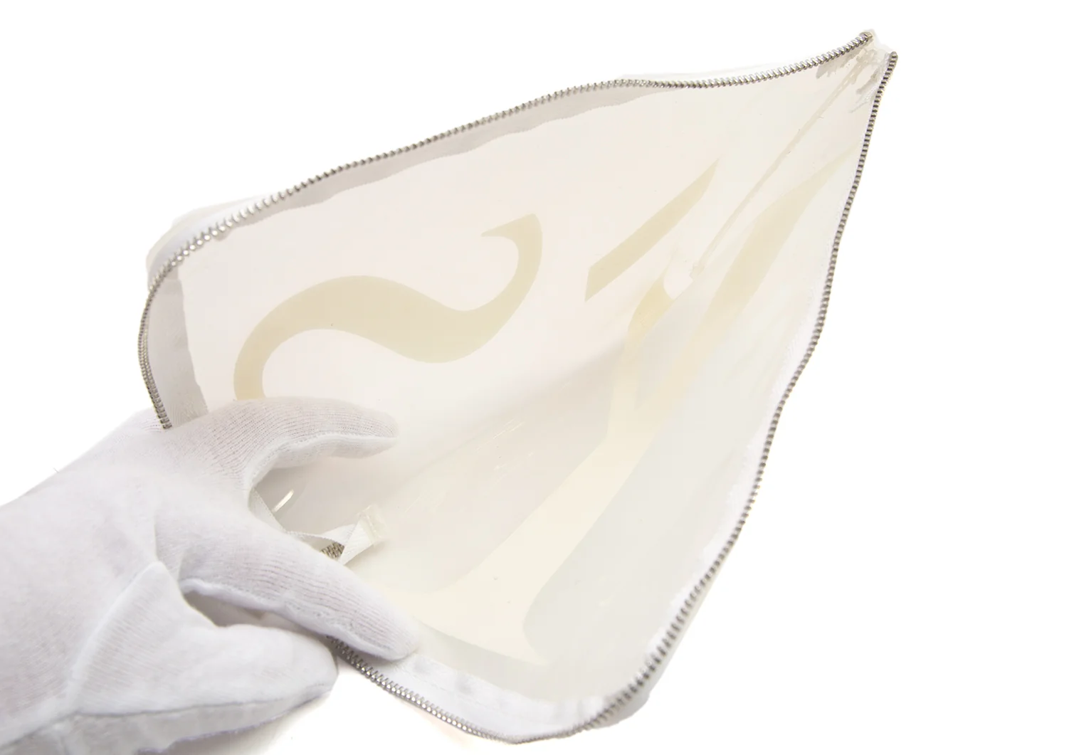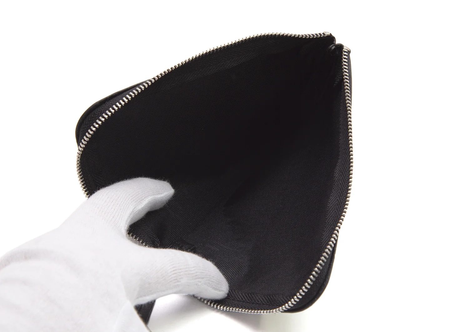 白ポーチは半透明です。内側仕切りやポケットなどありません。白ポーチプリント部分に若干擦れ汚れがあります(写真参照)。その他目立った傷や汚れなどなくいい状態です。
