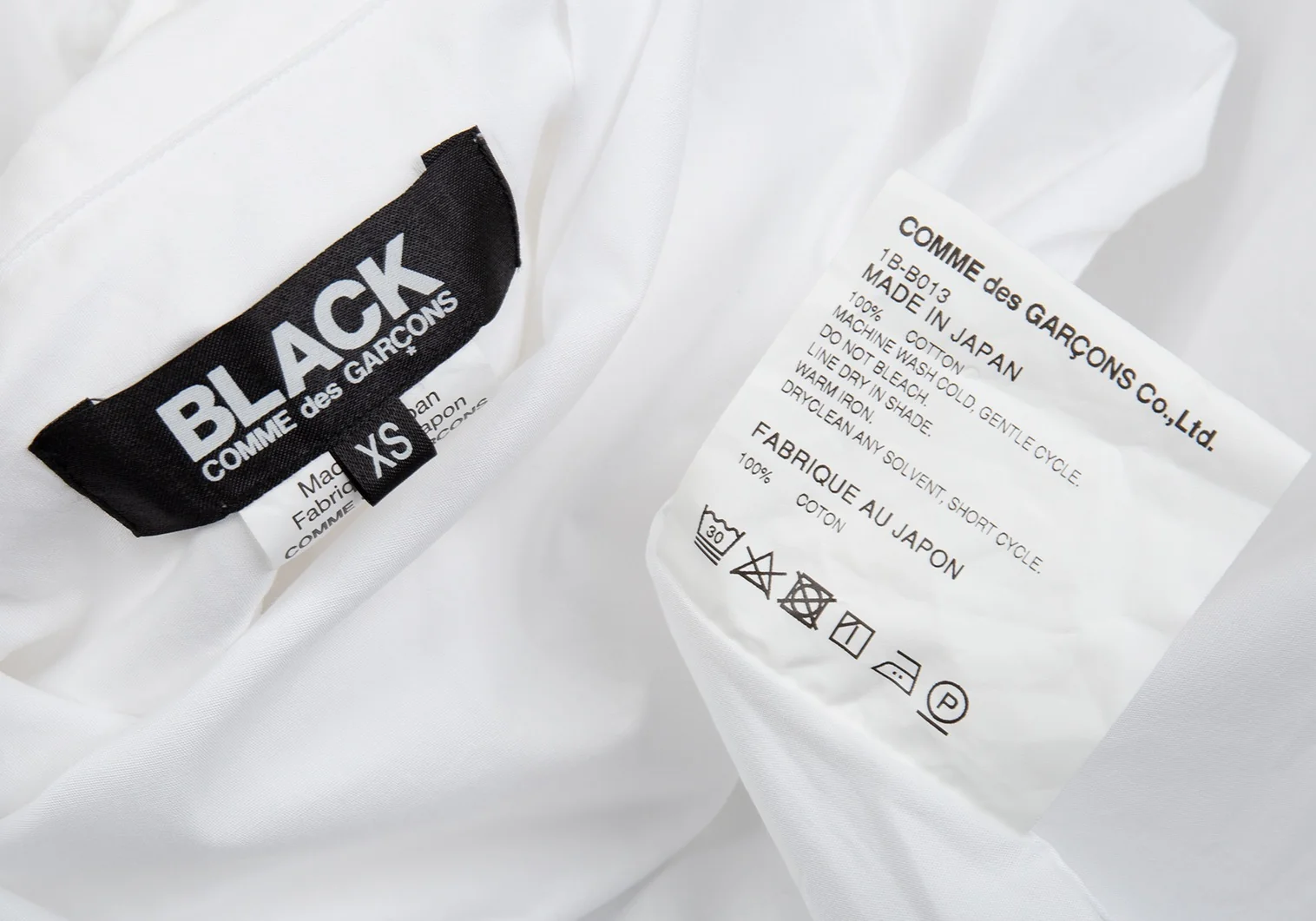 ブラックコムデギャルソンBLACK COMME des GARCONS リボンカフスラウンドカラーシャツ 白XS