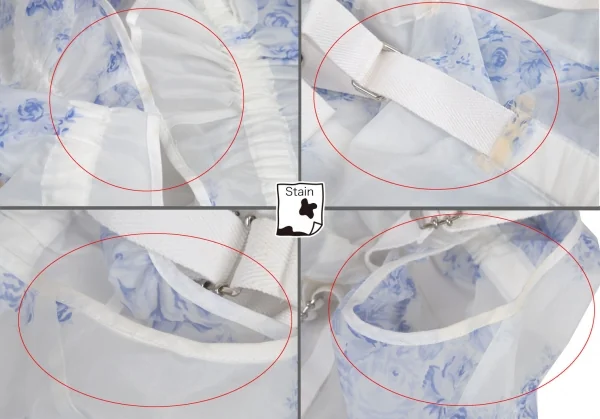 2003S/S コレクション着用アイテムです。透け感があります。首周り・脇下にシミ、右脇・後ろテープに薄シミがあります(写真参照)。その他に目立ったシミ、汚れ、ほつれ等なくいい状態です。クリーニング済み