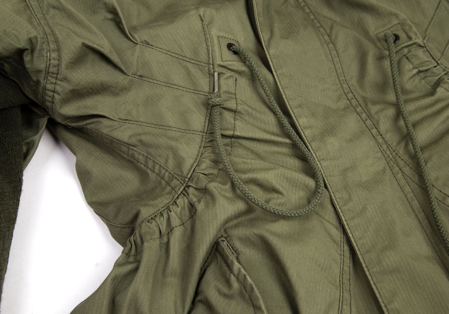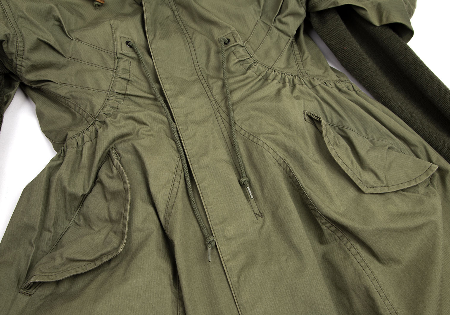 ジュンヤワタナベ コムデギャルソンJUNYA WATANABE COMME des GARCONS リブ袖ギャザー切替デザインモッズコート カーキS