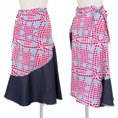 コムデギャルソンCOMME des GARCONS デニム切替フラワードットラップスカート 白水色ピンクS位