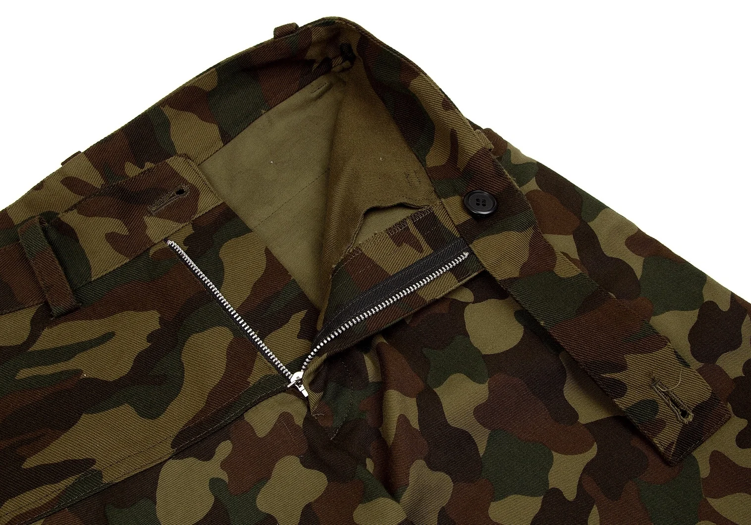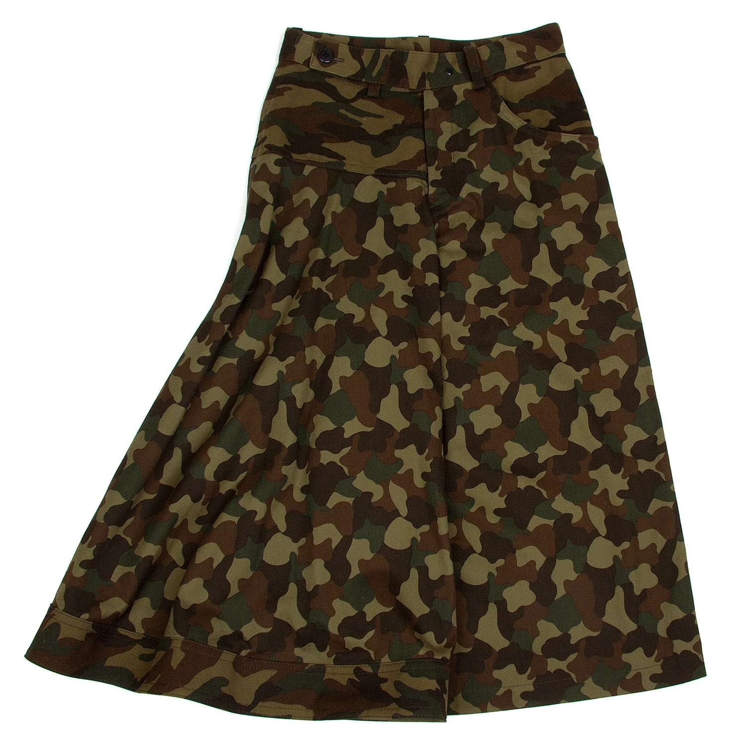 ヨウジヤマモト ファムYohji Yamamoto FEMME カモフラ変形コットンワイドパンツ 茶カーキ1