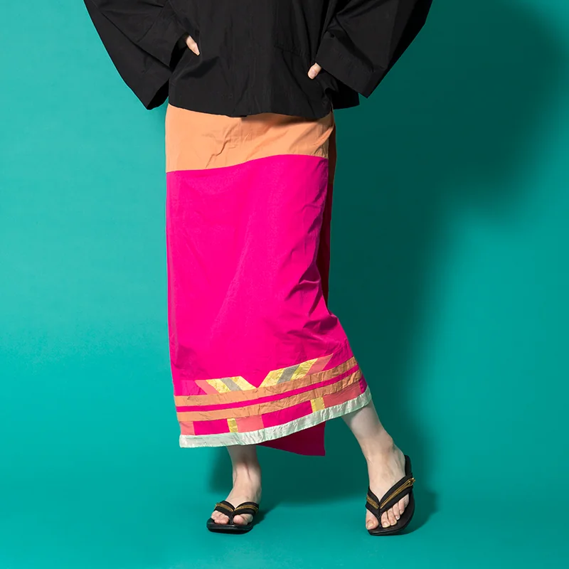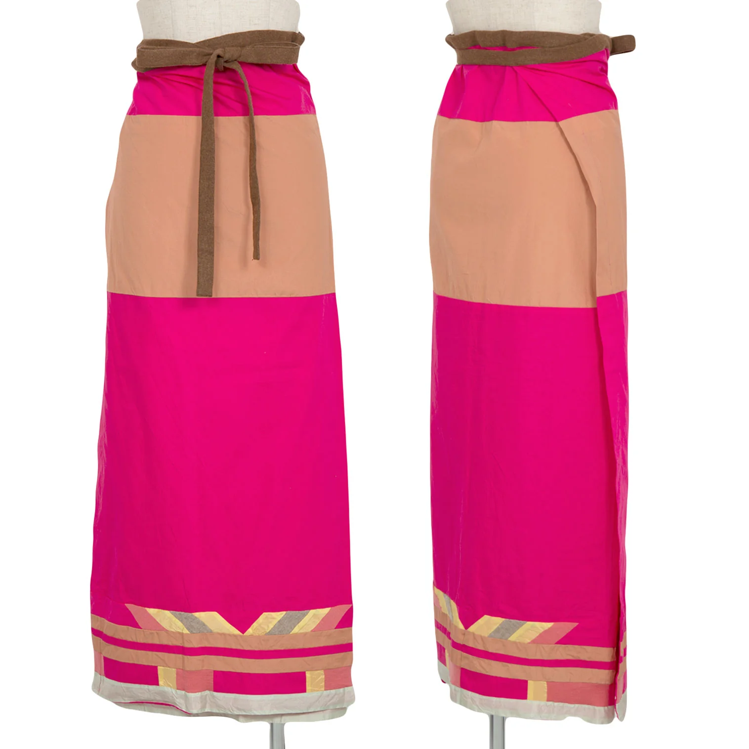 コムコム コムデギャルソンCOMME des GARCONSパネル切替デザインラップスカート ピンク茶他M