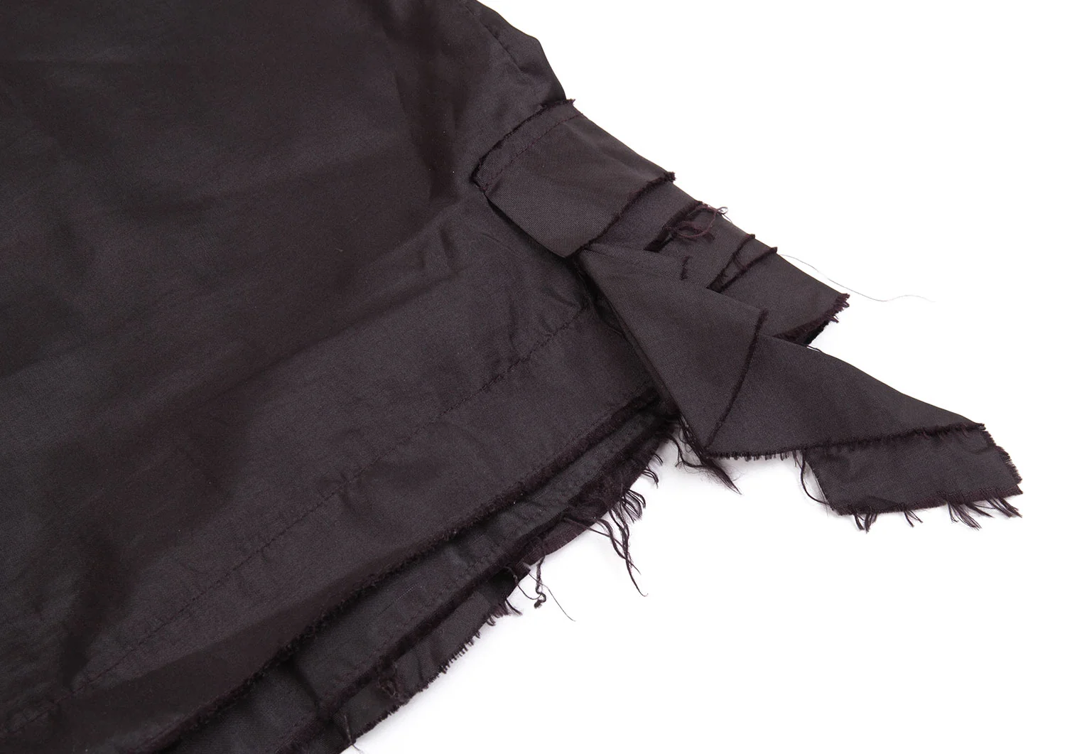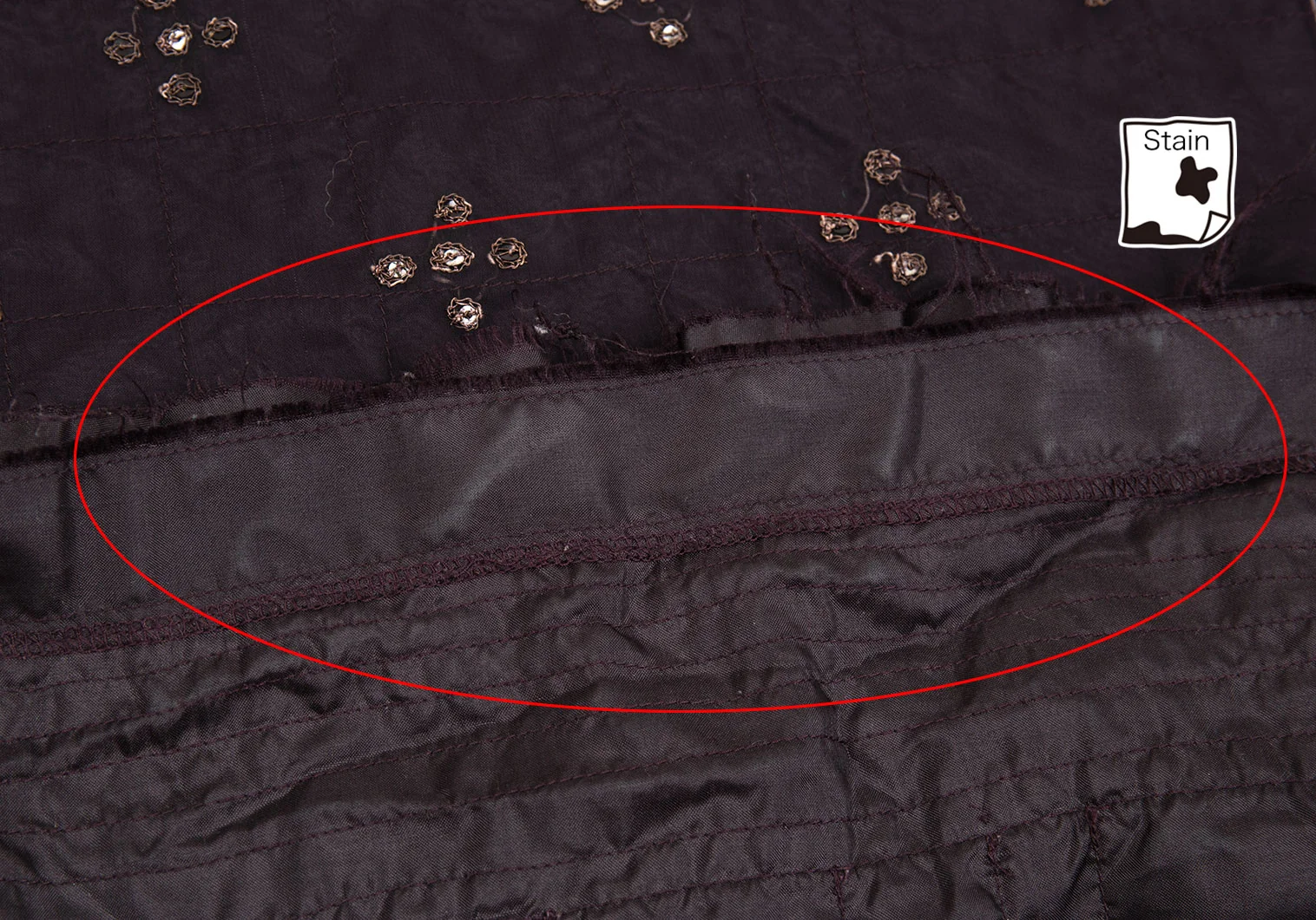 黒に近い焦げ茶色です。前裾裏に汚れがあります(写真参照)。その他に目立ったシミ、汚れ、ほつれ等なくいい状態です。クリーニング済み