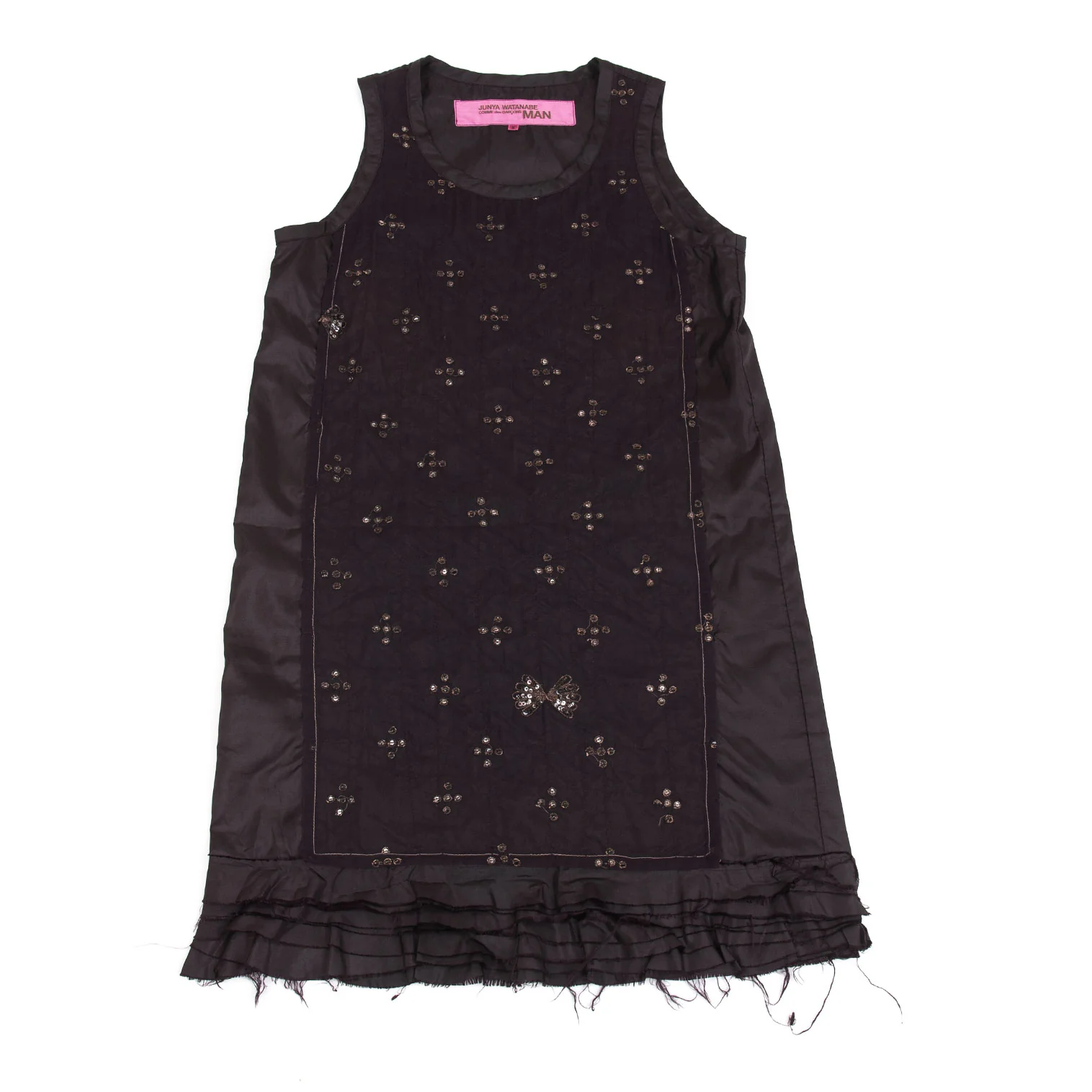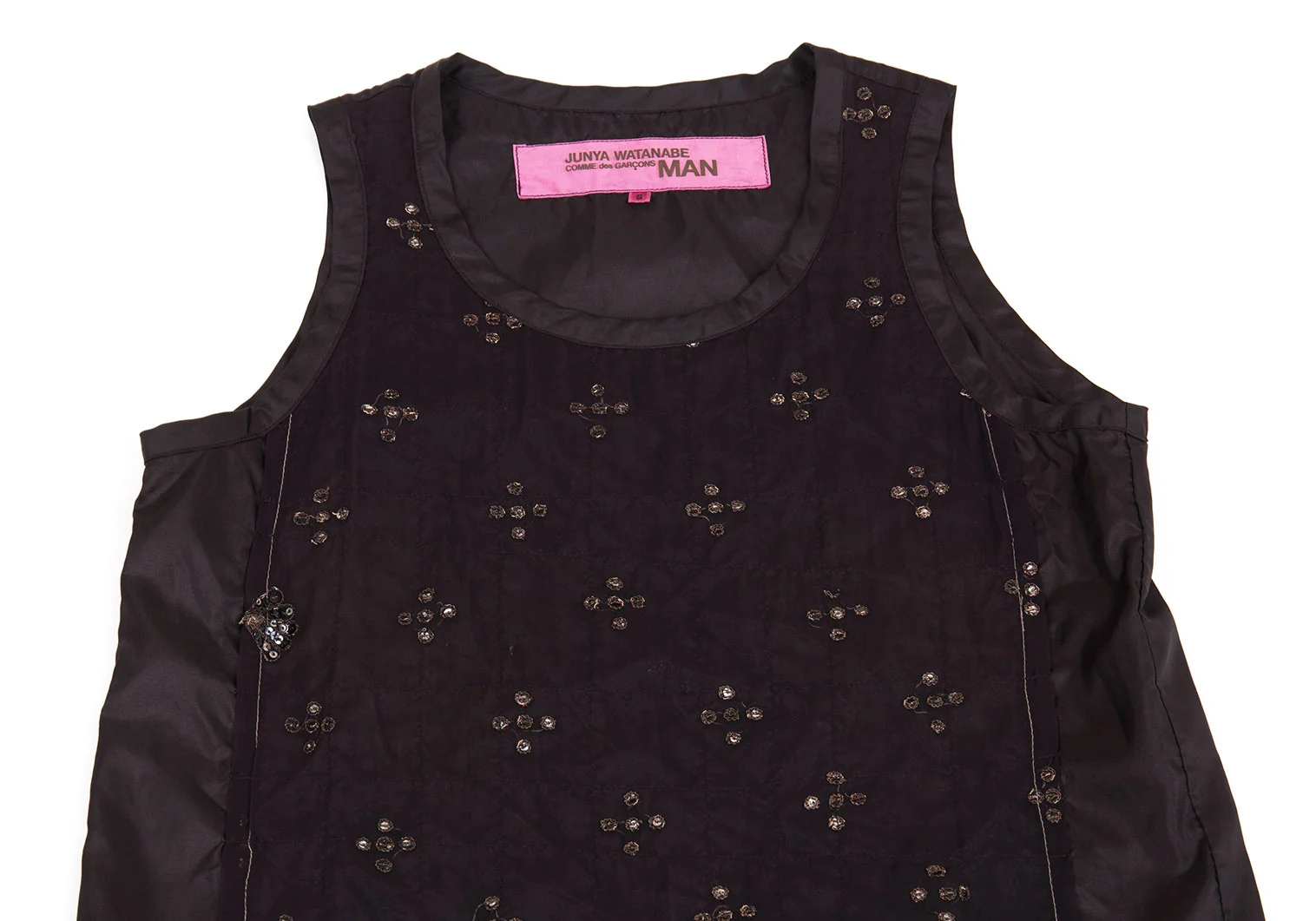 ジュンヤワタナベマンピンク コムデギャルソンJUNYA WATANABE MAN PINK COMME des GARCONS スパンコール刺繍ノースリーブチュニック 焦げ茶S