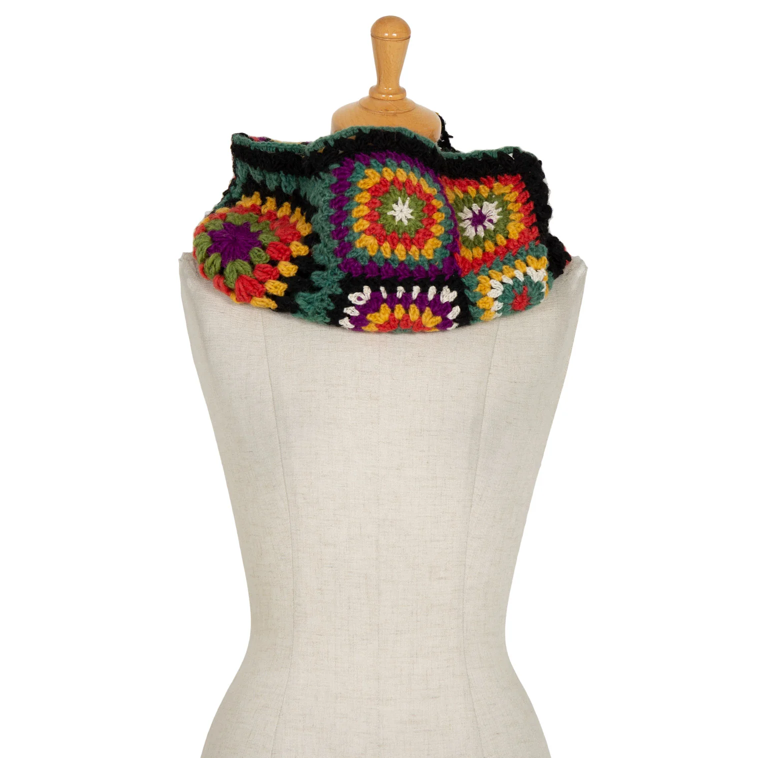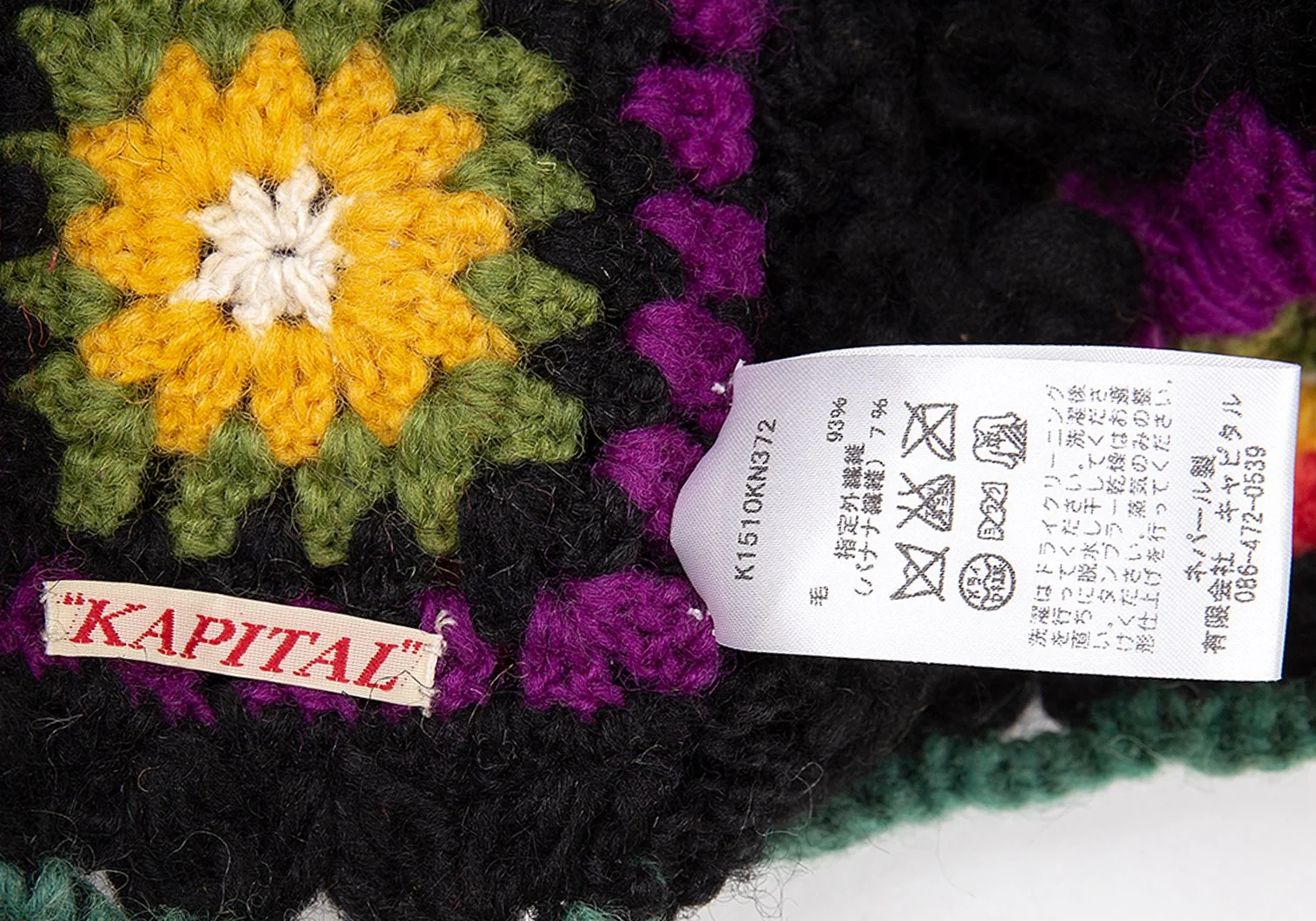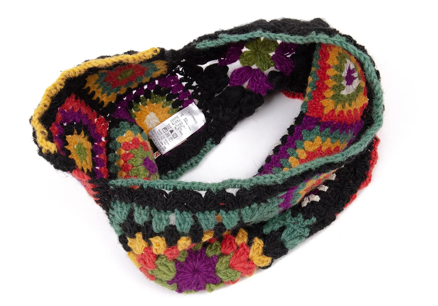 キャピタルKAPITAL レース編みニットネックウォーマー 黒マルチ