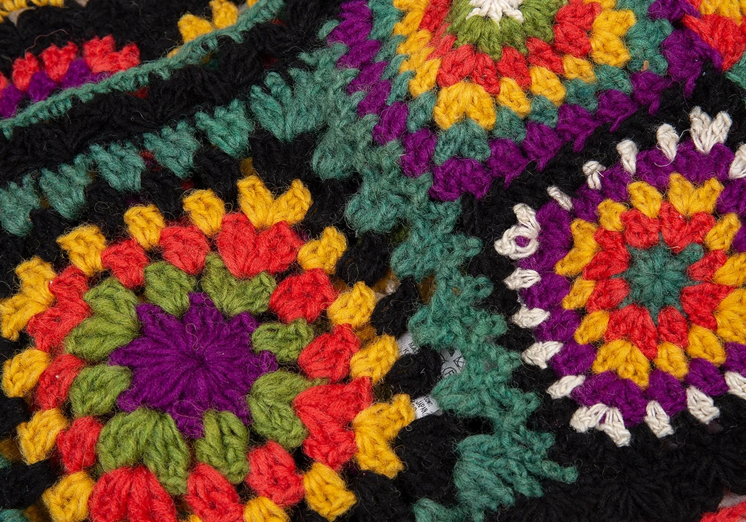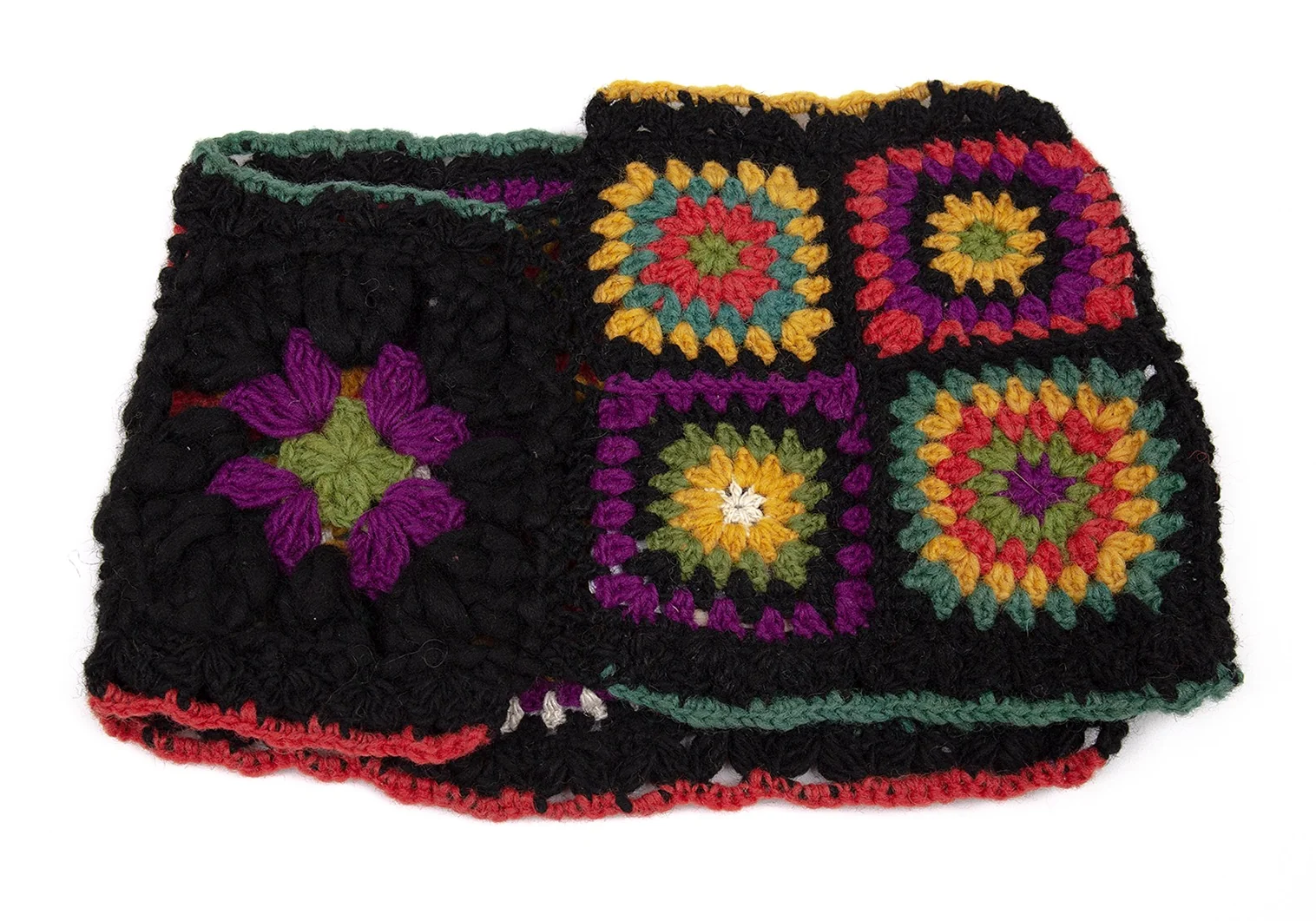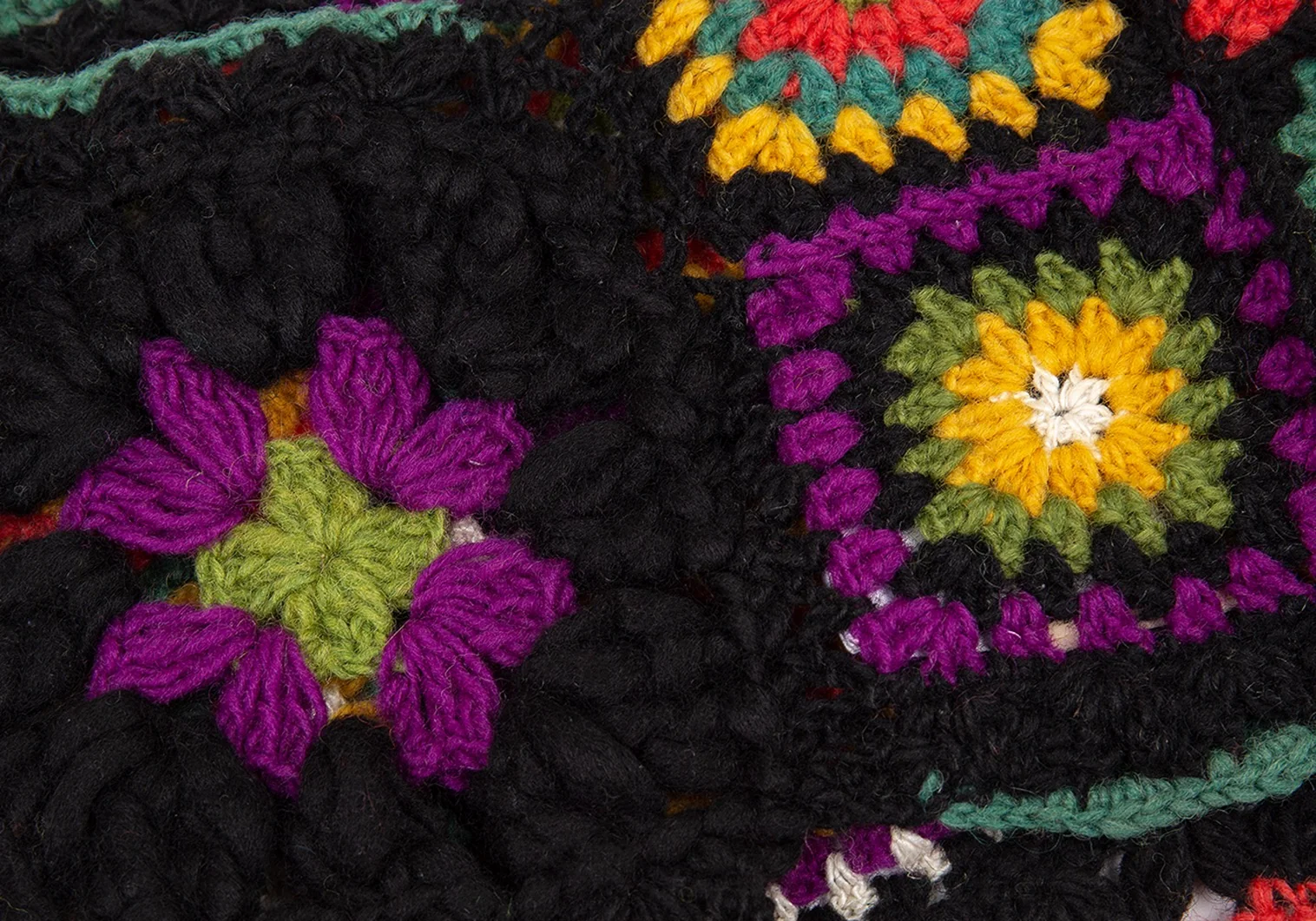 キャピタルKAPITAL レース編みニットネックウォーマー 黒マルチ